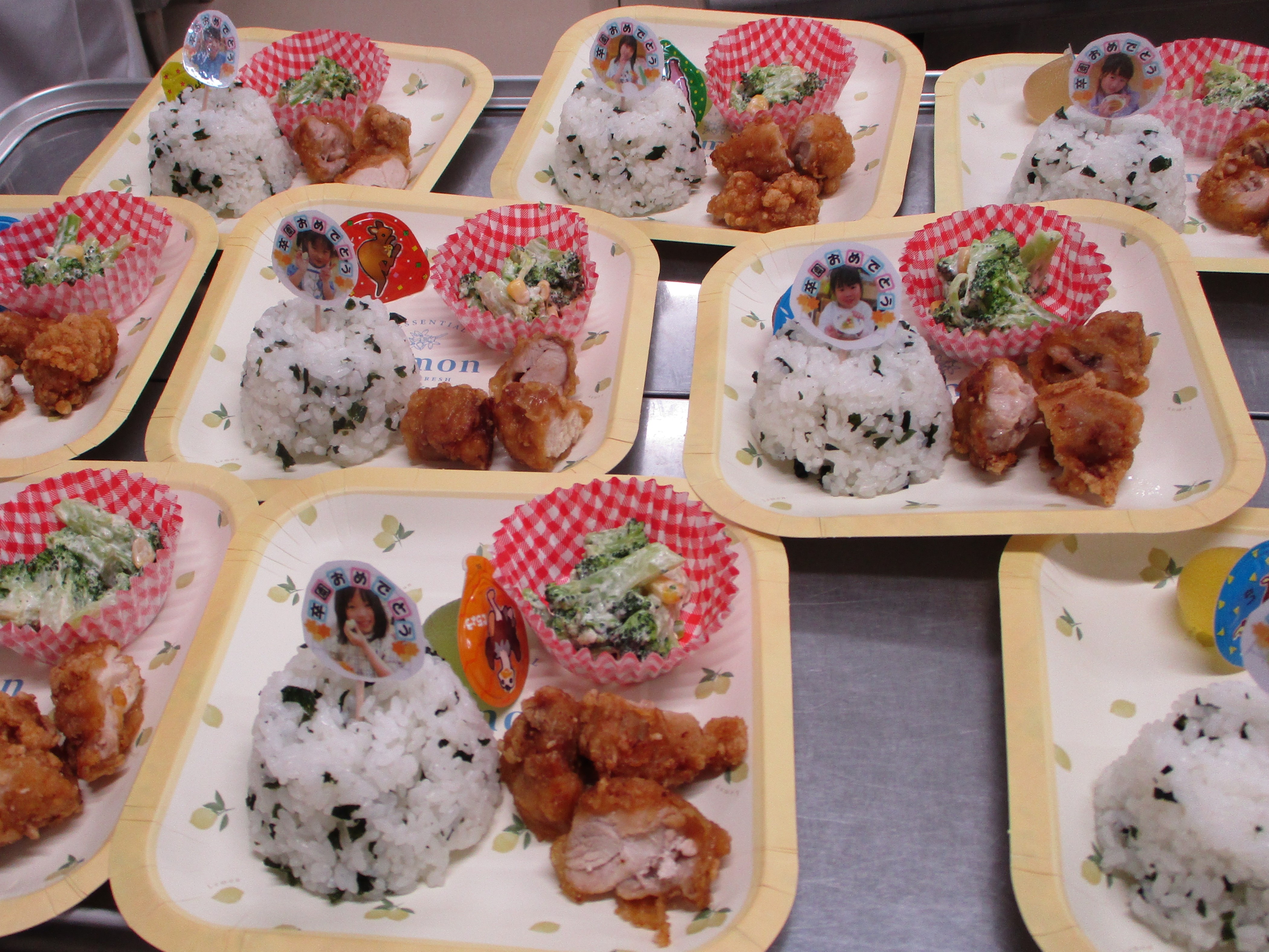 宇宙の子さんのリクエストメニューを提供しました! わかめごはん・ABCスープ・鶏肉のから揚げ・ブロッコリーサラダ・ミニゼ…