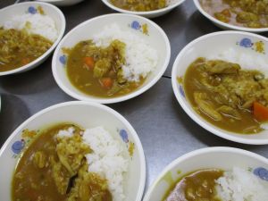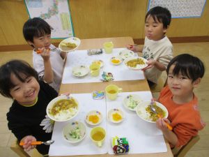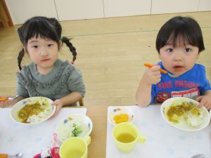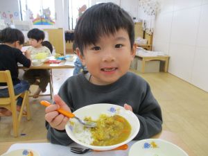 大好きなカレー、みんな嬉しそうに食べています♪