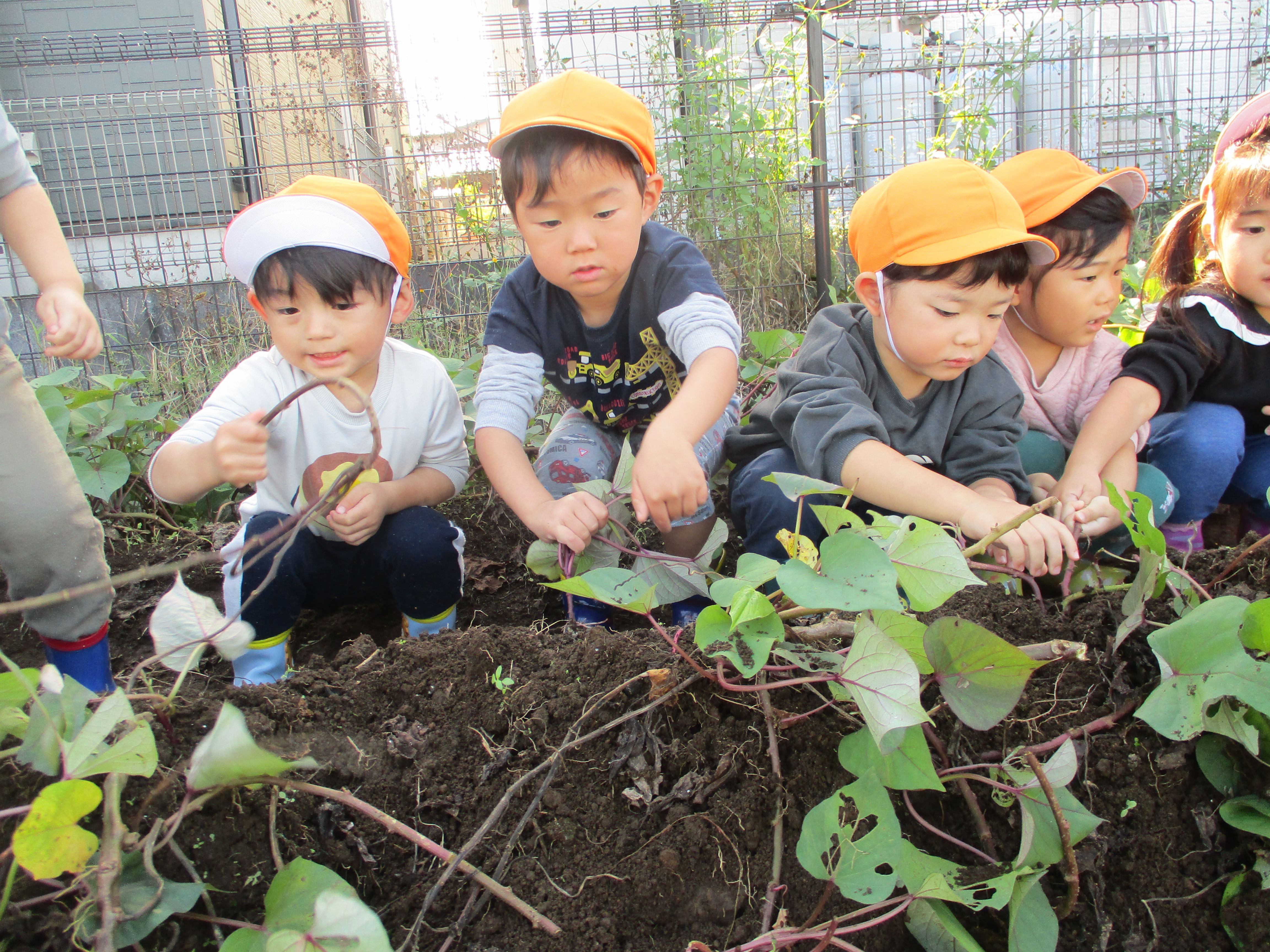 山の子くみのお友達は自分達の力で頑張ってさつまいもを掘りました!