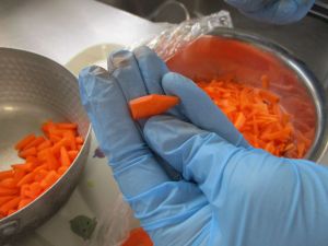 今日は人参の甘く煮てグラッセにし、上にのせて提供しました♪