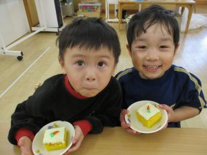 お誕生日会のおやつはイギリスの伝統菓子“キャロットケーキ”です!✨
