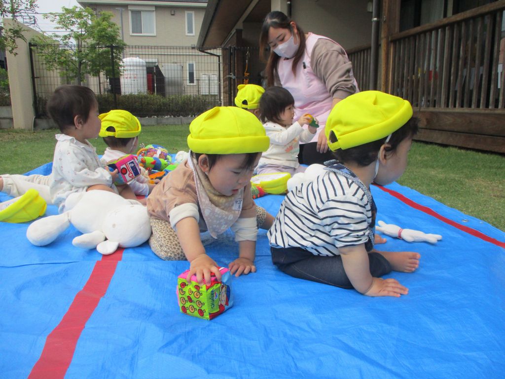 外の外気に触れながら、のびのびと過ごしている子どもたちです。