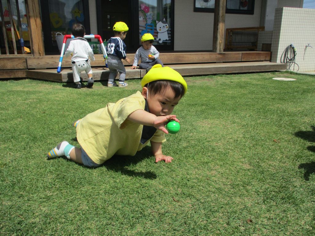 テラス前では、ハイハイをしながら気持ちよさそうに過ごしたり、葉っぱに触れて探索を楽しんでいます🌟
