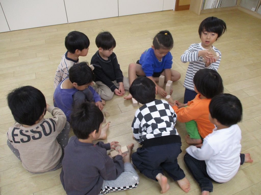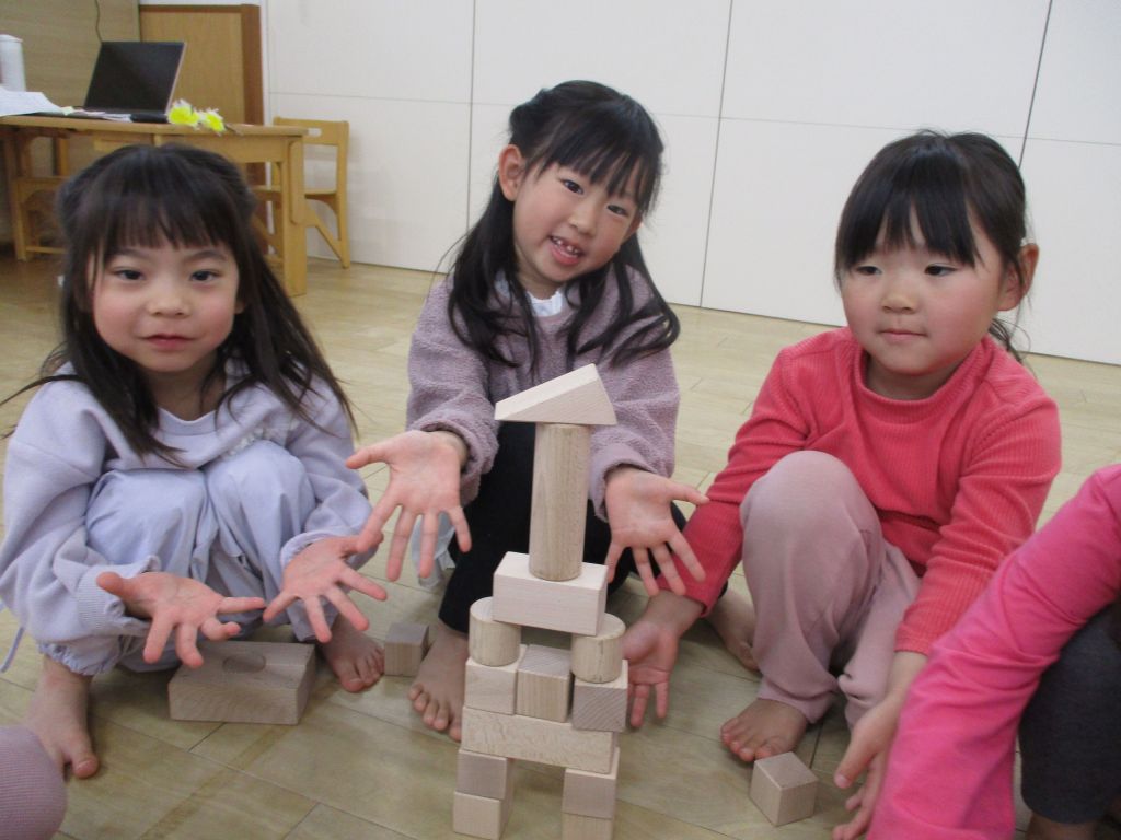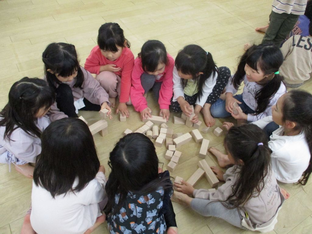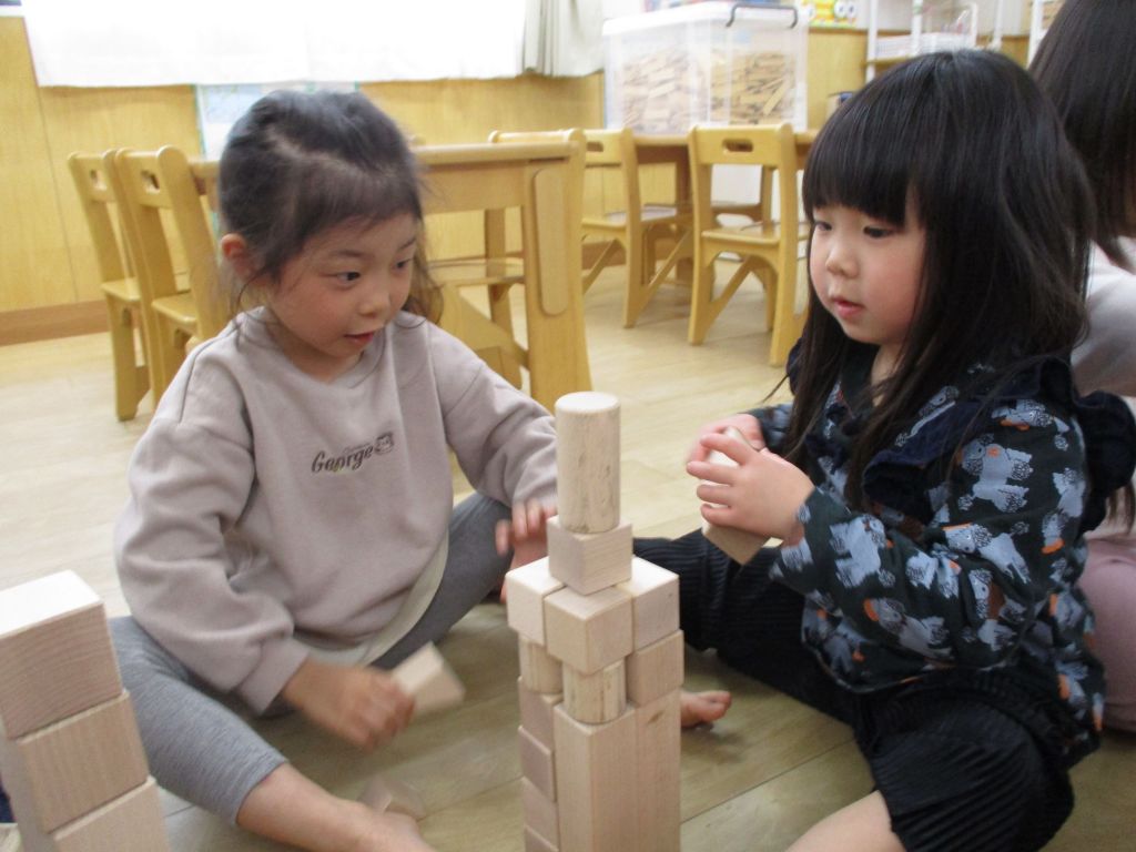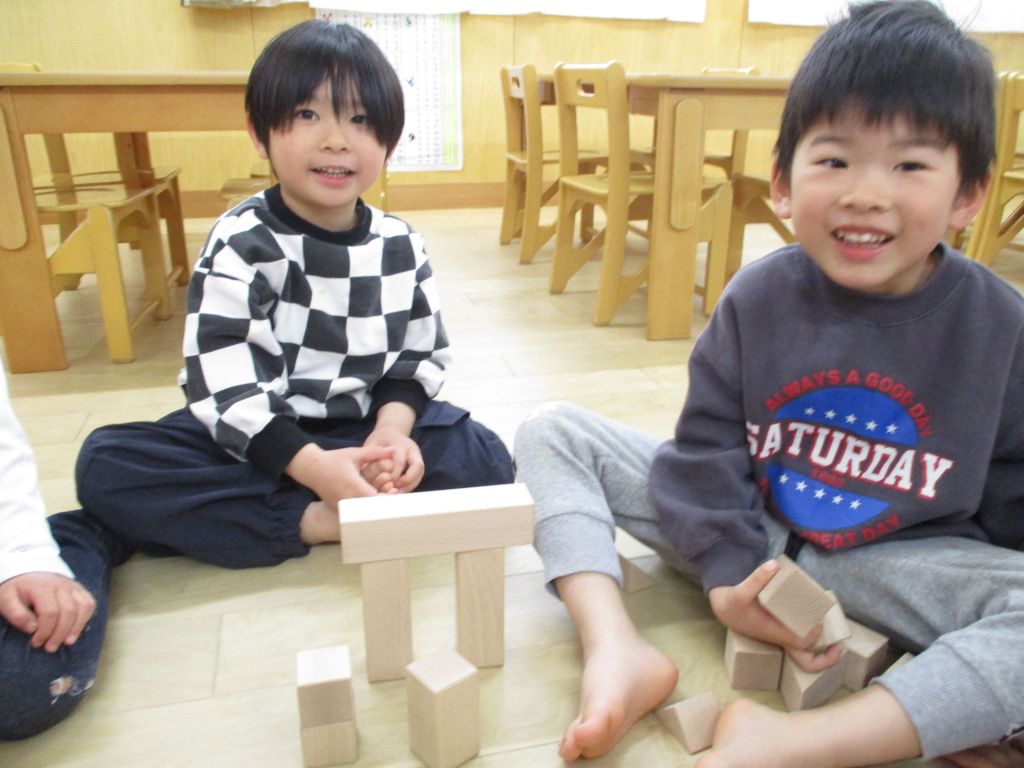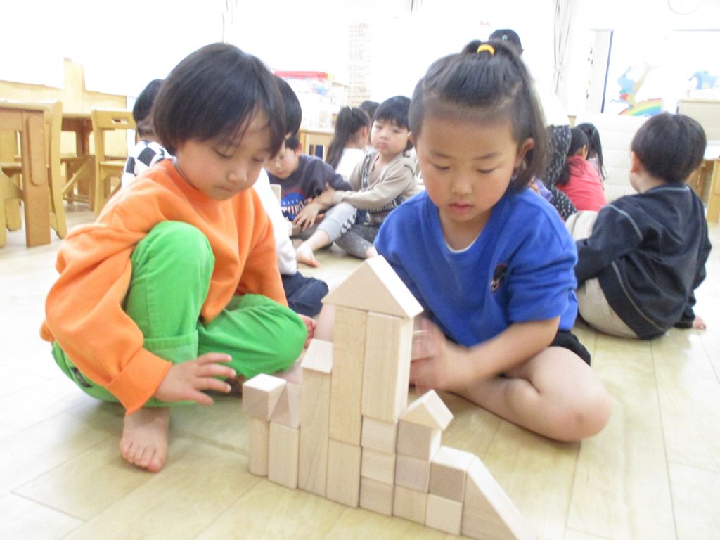 自由遊びの時間に積み木で遊びました。