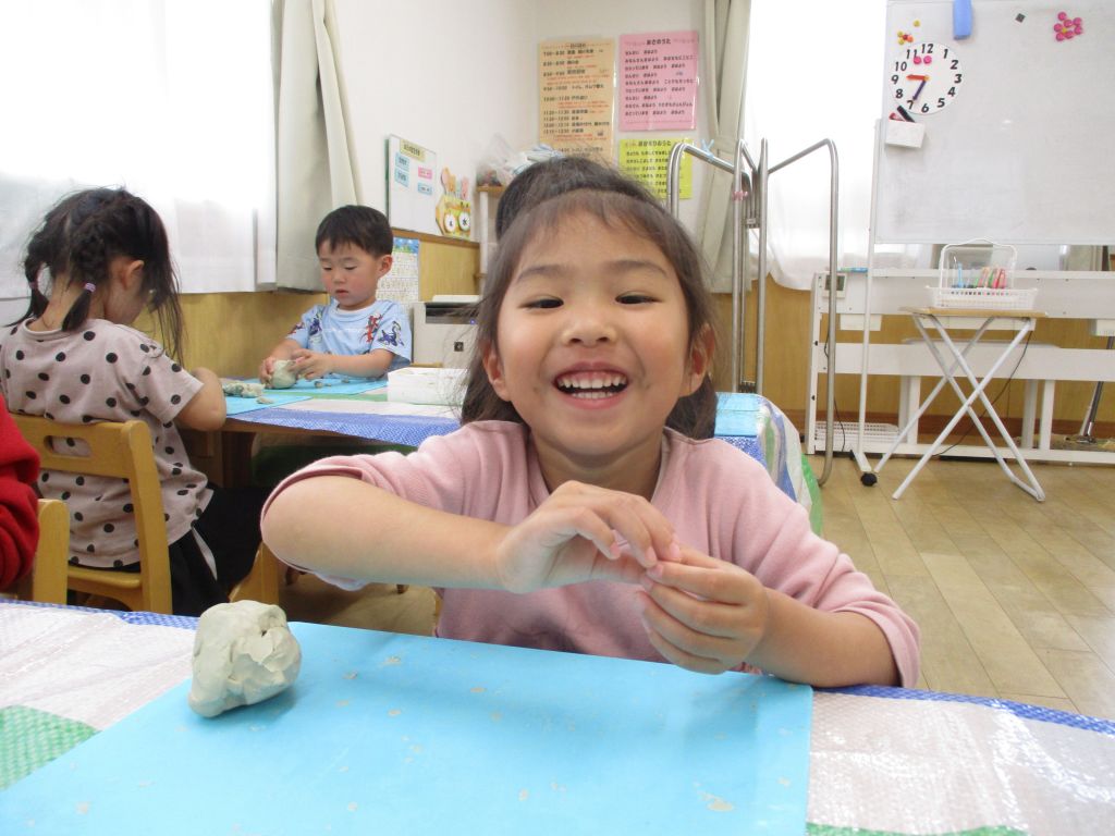 「ピザ作る!」「パンケーキがいい♬」と楽しそうに粘土をこねて