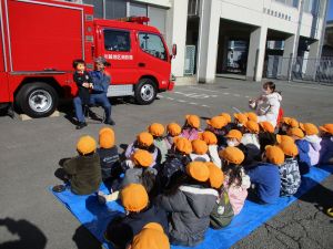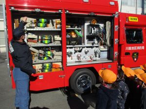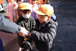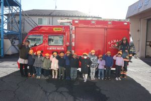 今日は太陽の子くみと宇宙の子くみで川越北消防署に見学に行きました。