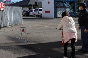 「重たい!」とホースの先端部分の重さに驚いていた子ども達。