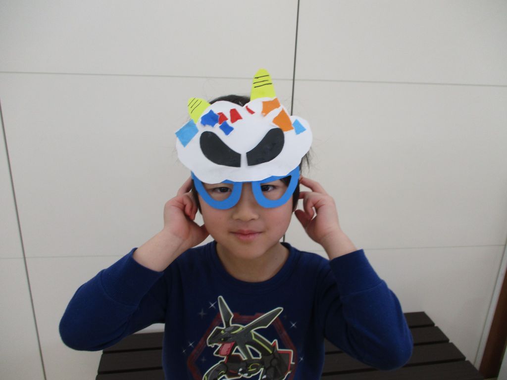 「メガネは赤と青どっちにしようかな」と考えながら選んでいた子ども達!