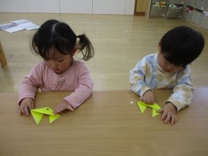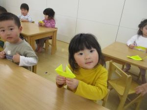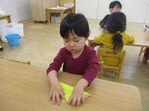 きつねの形に折れると「出来た!」と嬉しそうにしていました♬