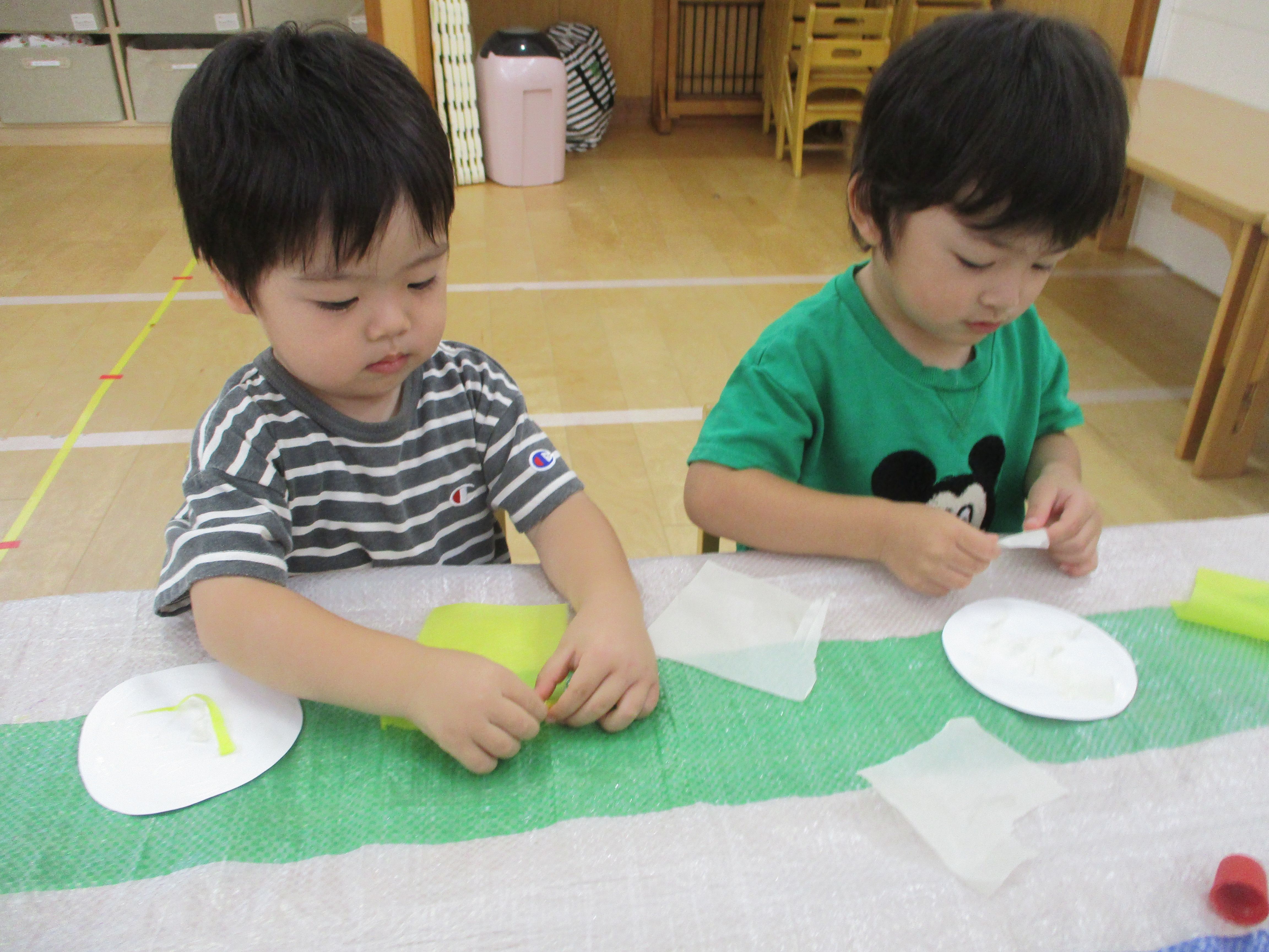 10月6日のお月見にむけて、お月見飾りを作りました。