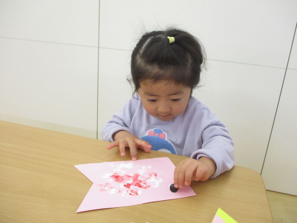 こいのぼりの目を丸シールで貼りました!
