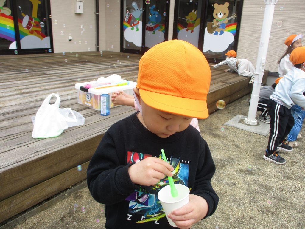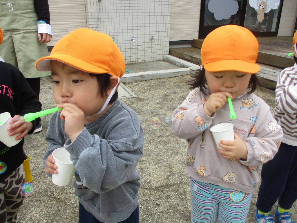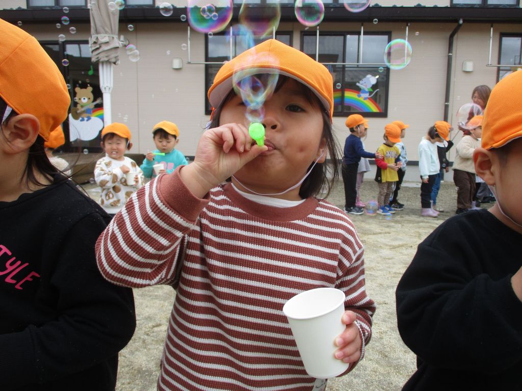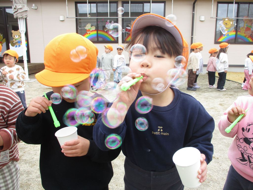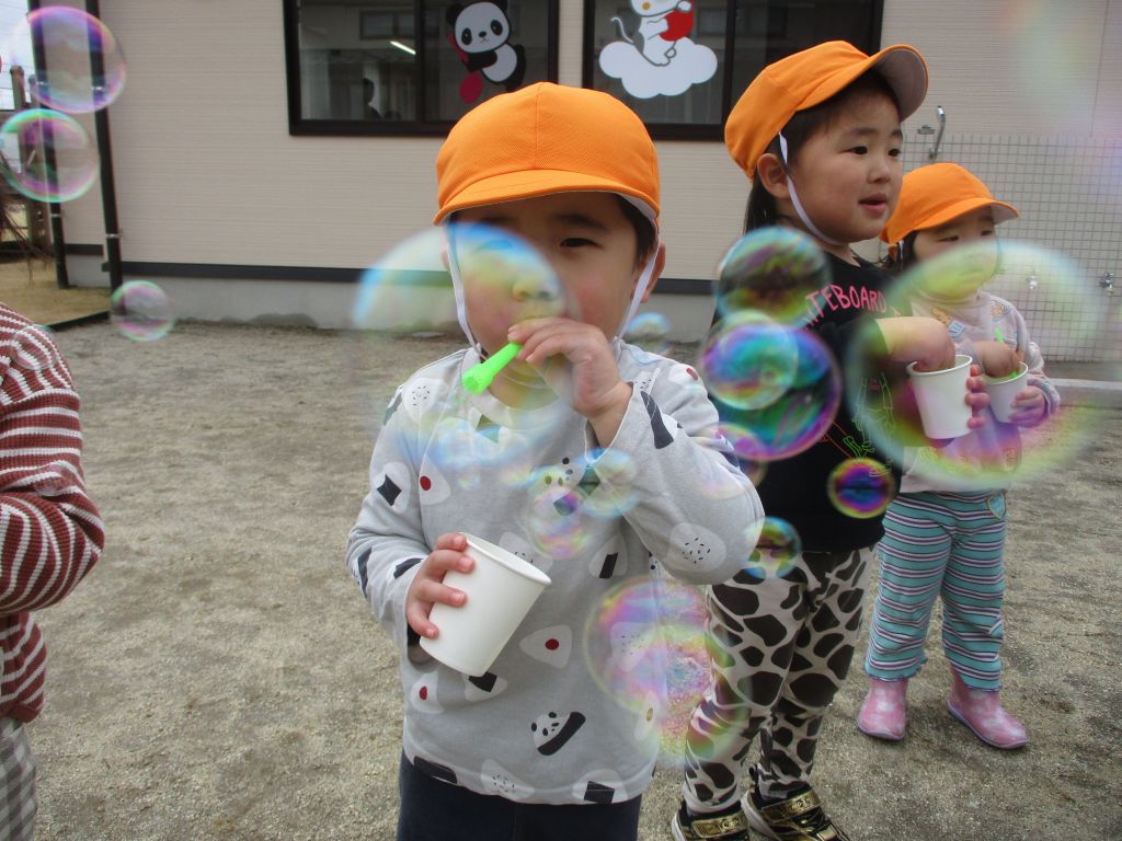 みんなでシャボン玉に挑戦しました!