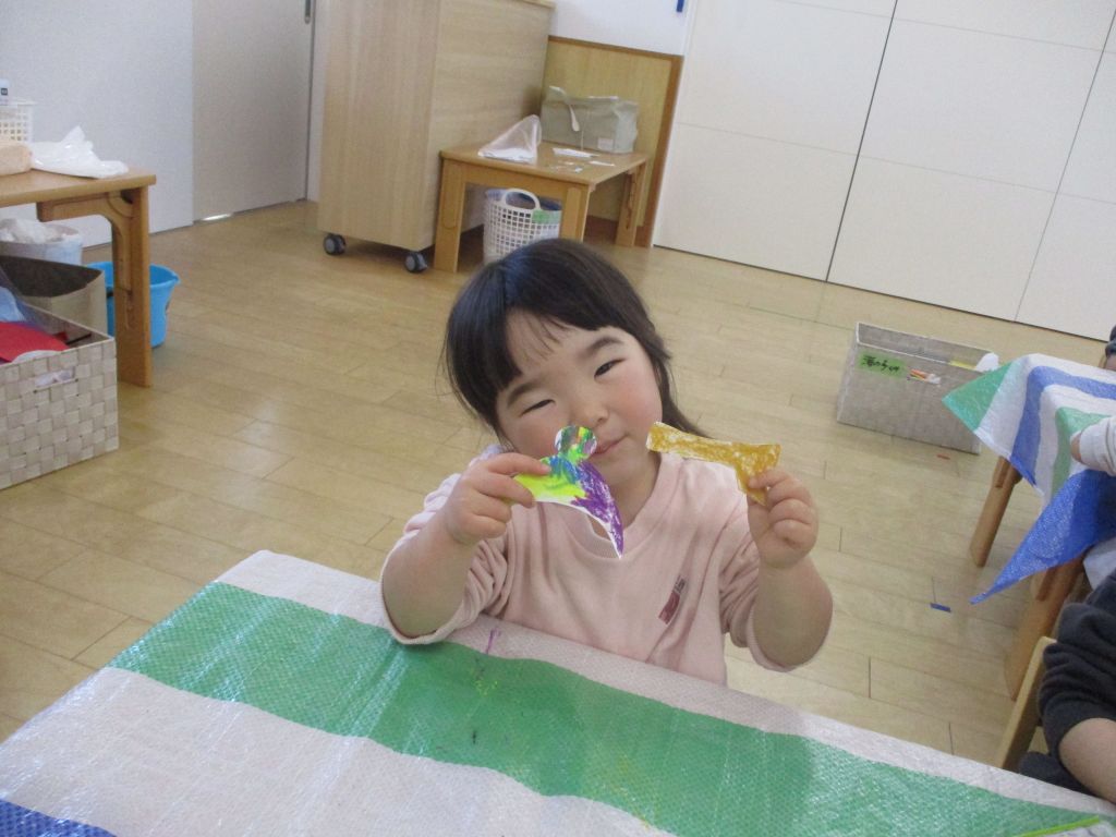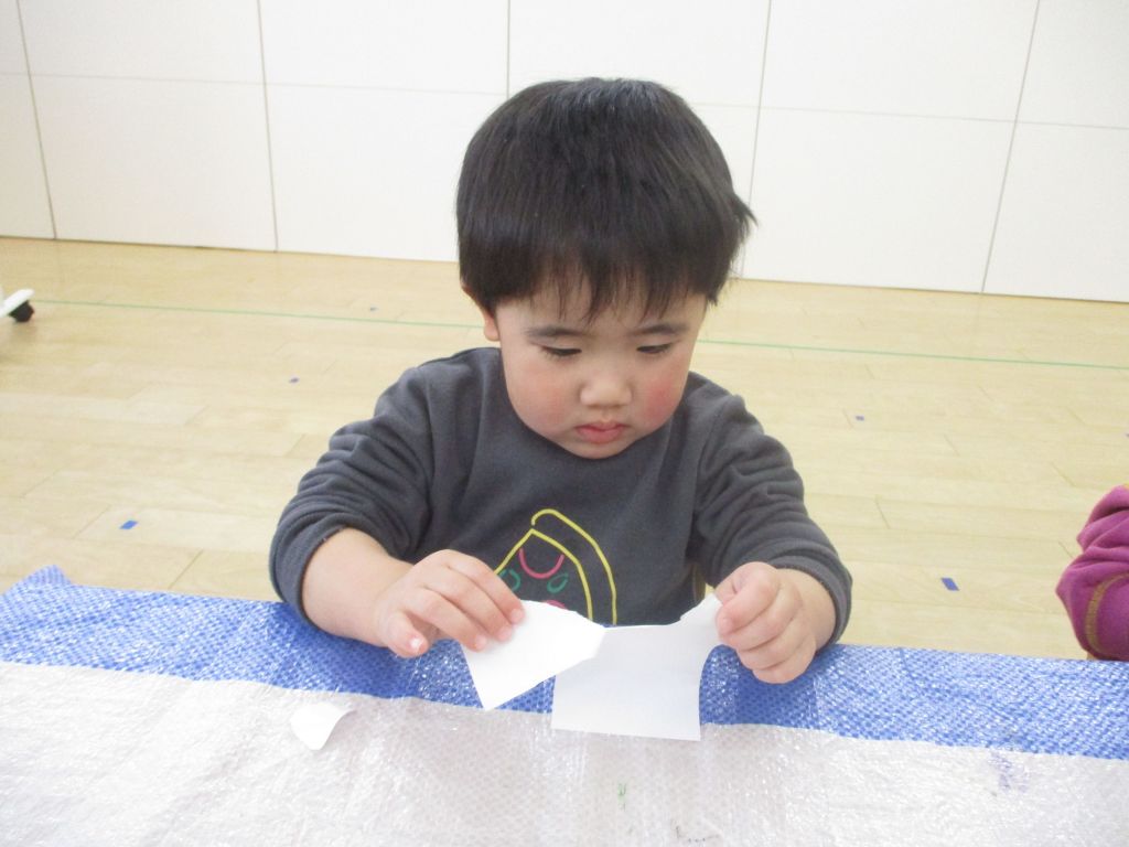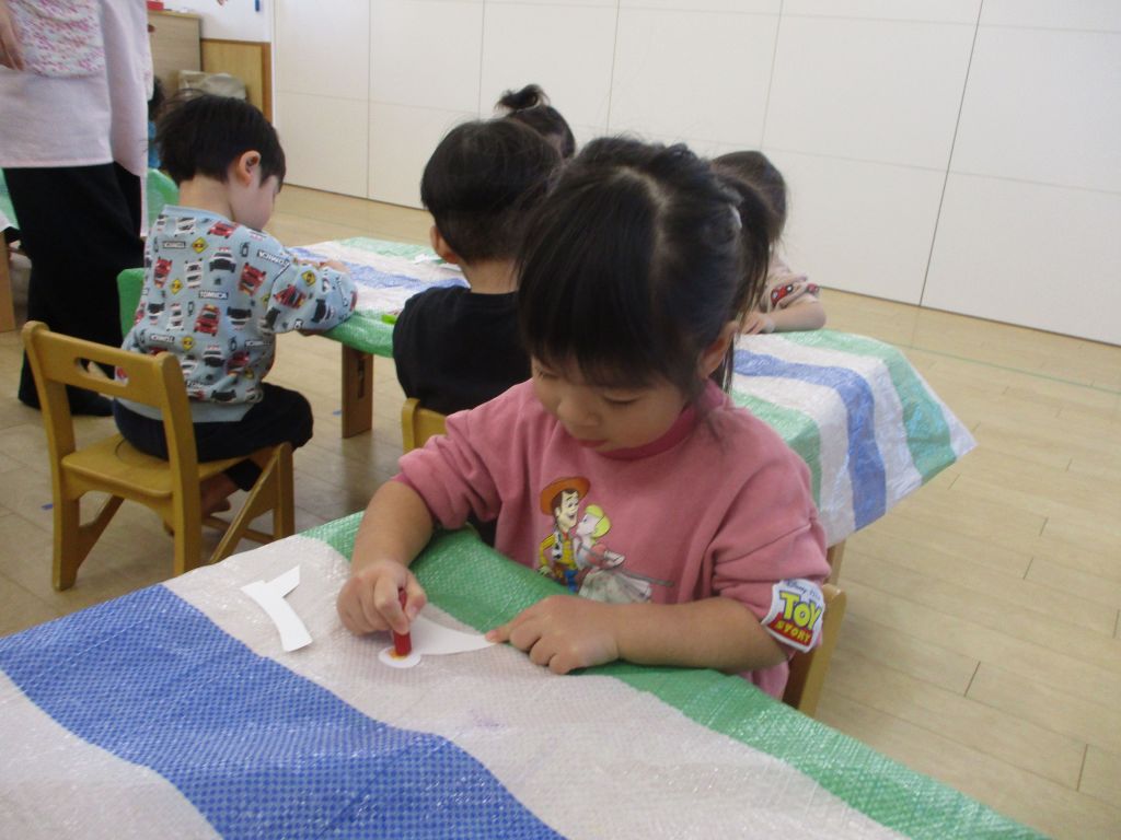 一日目は折り紙をちぎり、ペンギンのお腹にちぎった折り紙を糊で貼りました!