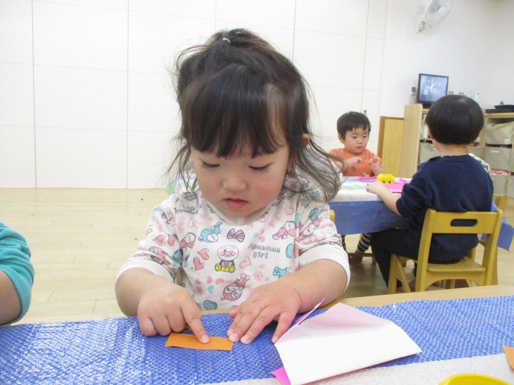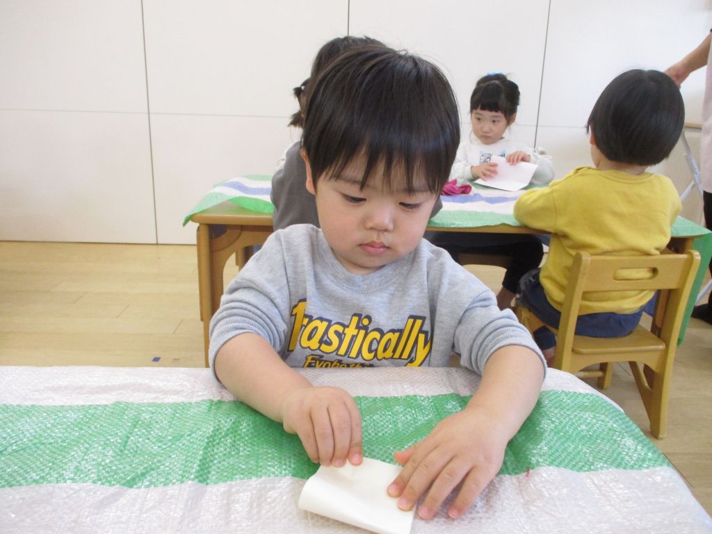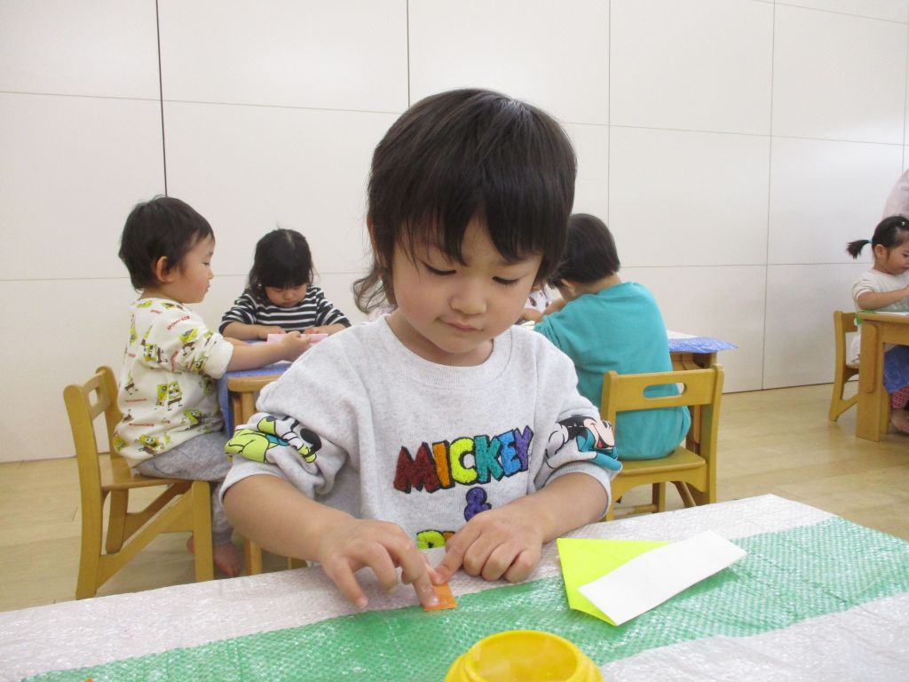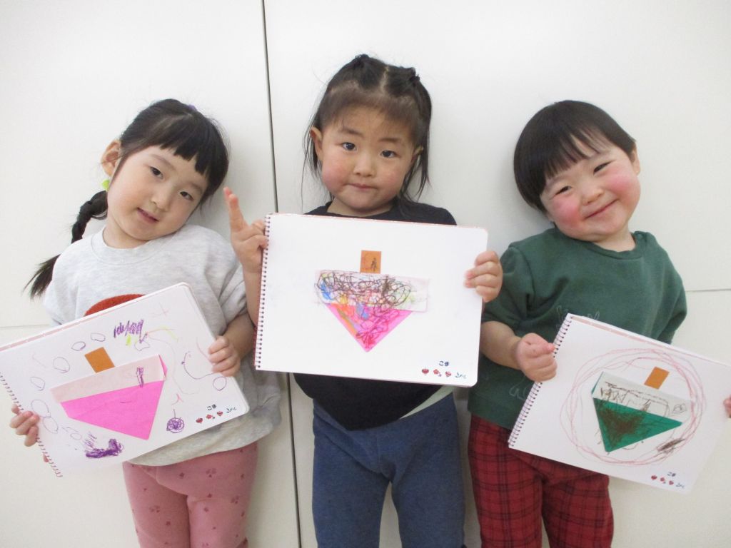 完成した絵をニコニコ笑顔で見せてくれた海の子くみさんです♬