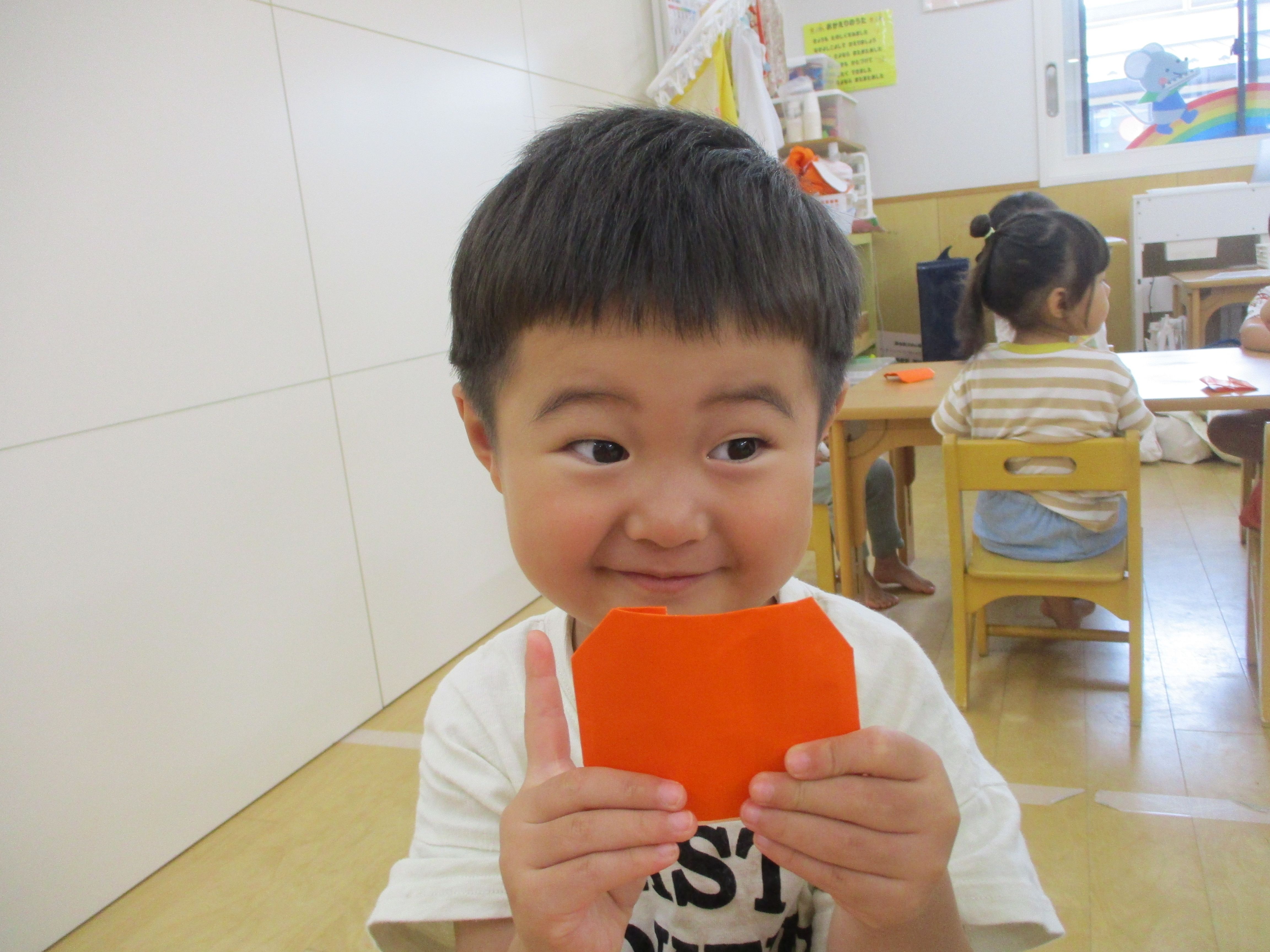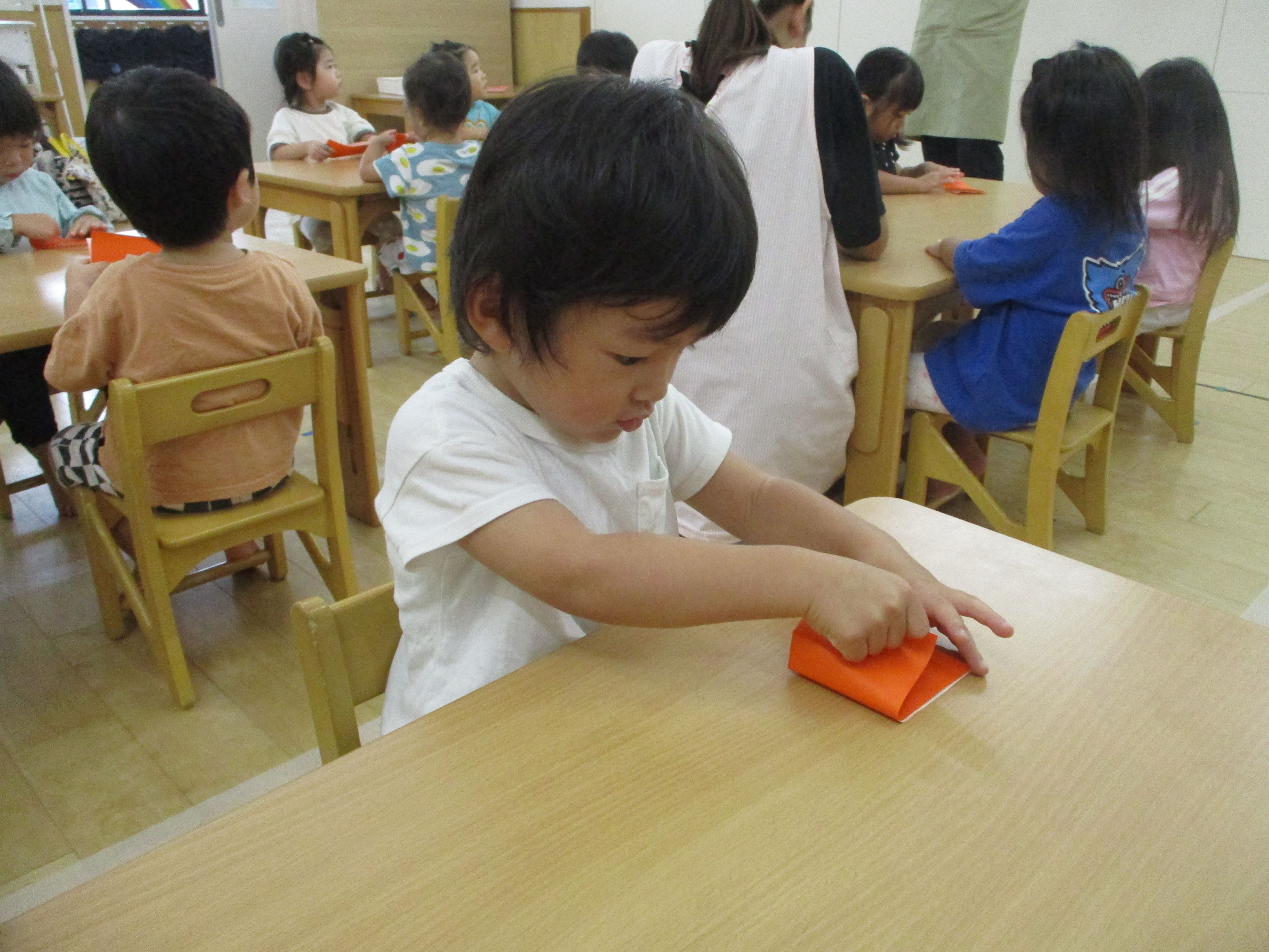 折り紙に沢山折り目を付けてアイロンをかけて形を作っていきます!