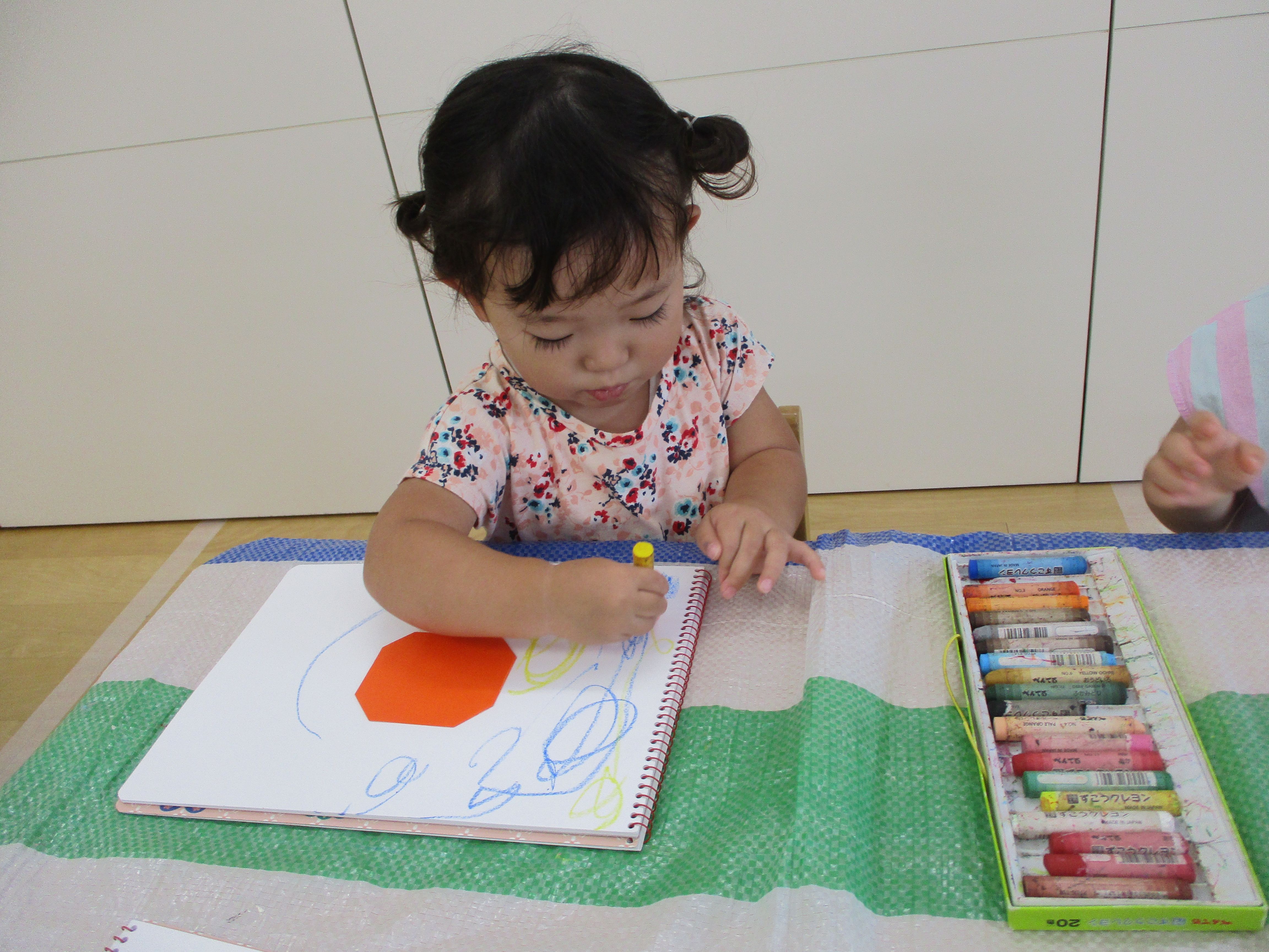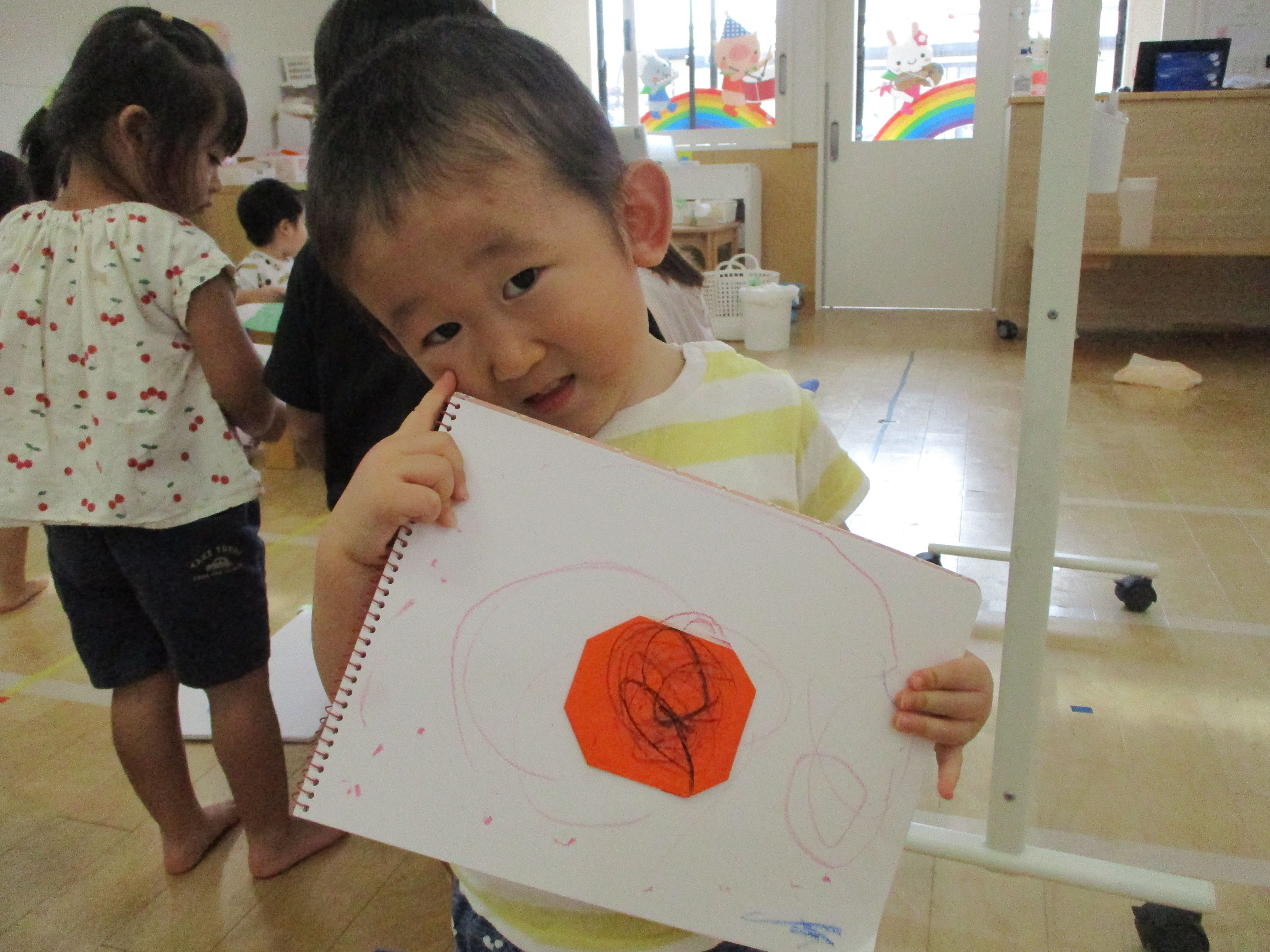 後日、柿のヘタを描いたり、まわりにお絵描きをして完成です!🌟