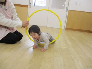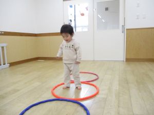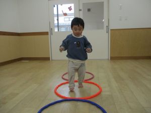 フラフープの中を歩いたり