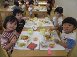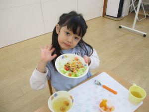 給食はタコライスにポトフ、フルーツポンチゼリーで、みんなの大好きメニューでした。