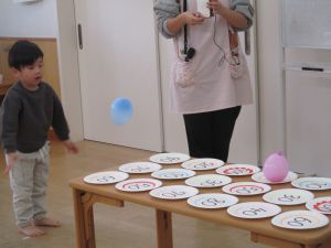 海の子・山の子・太陽の子・宇宙の子くみは、クラス対抗で「風船スライムで得点ゲット!」ゲームを