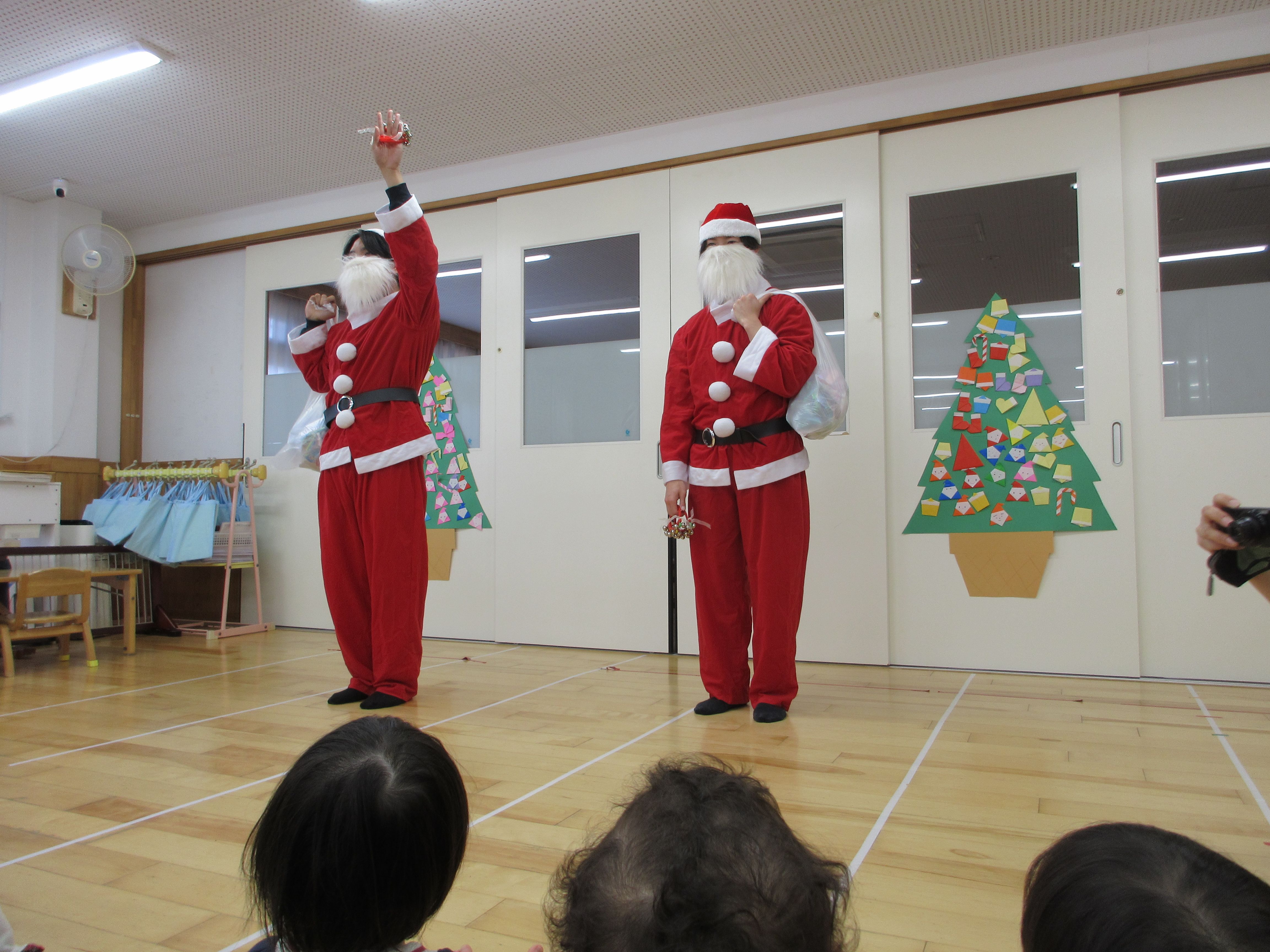 クリスマス会を行いました★ ツリーに飾りをつけ、可愛らしいツリーの完成です🎄 元気いっぱい「あわてんぼうのサン…