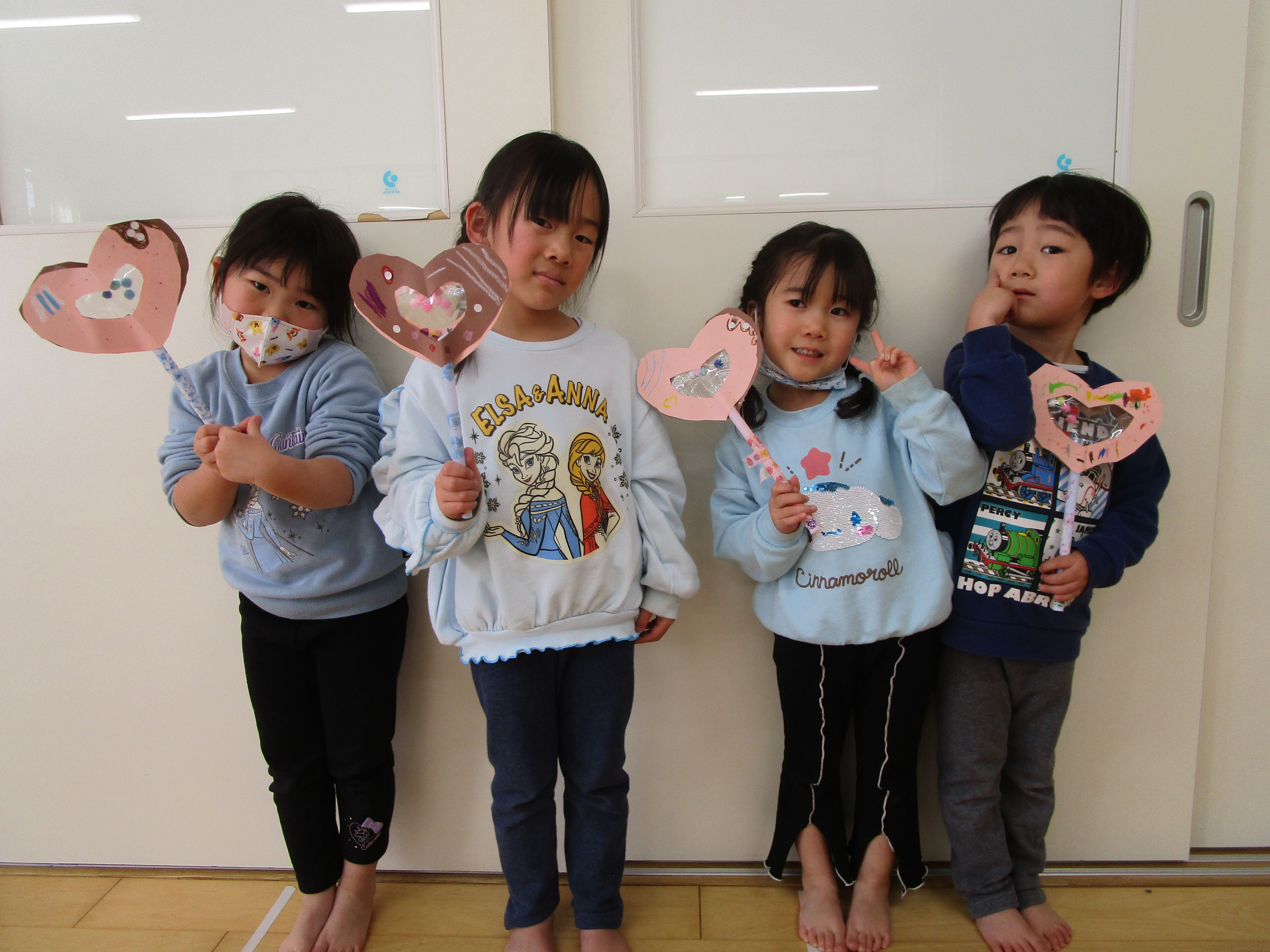 山の子くみのバレンタイン製作は、ハートのステッキを作りました💝 始めに、はさみを使って半分に折った画用紙を切っ…