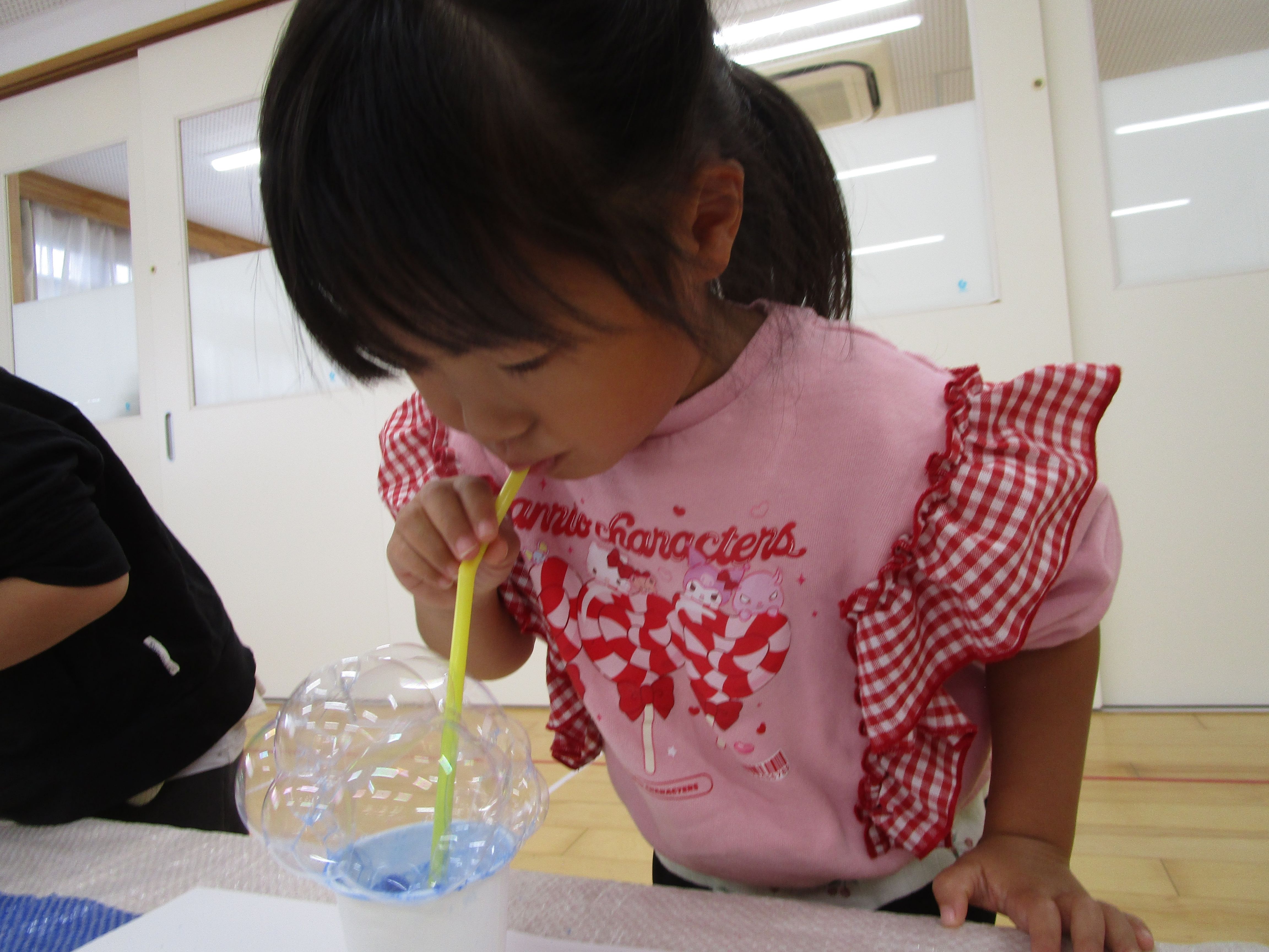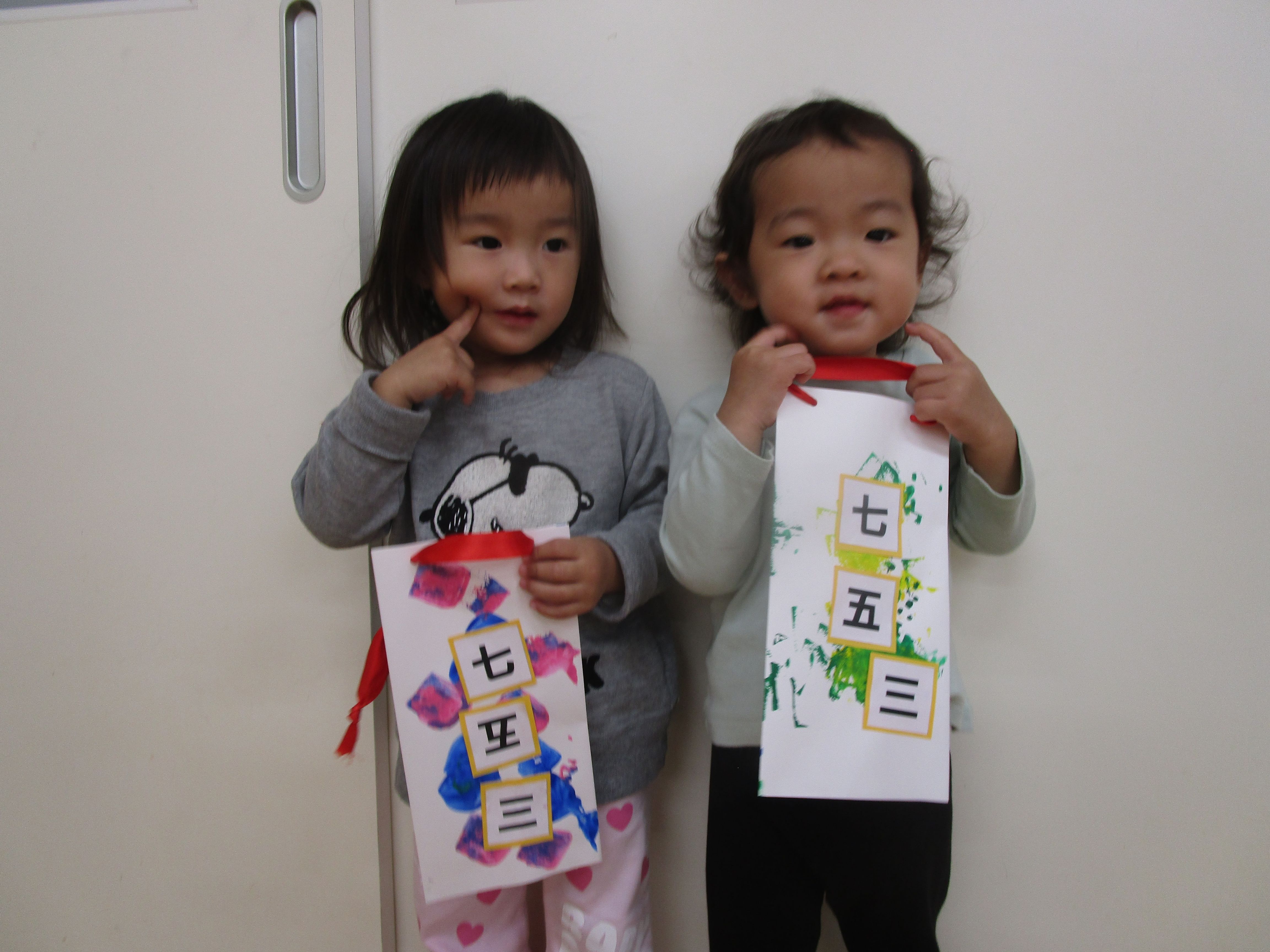 11月15日の七五三の日に向け、七五三製作を行いました。 今回は、バブルアートで千歳飴の袋に模様…