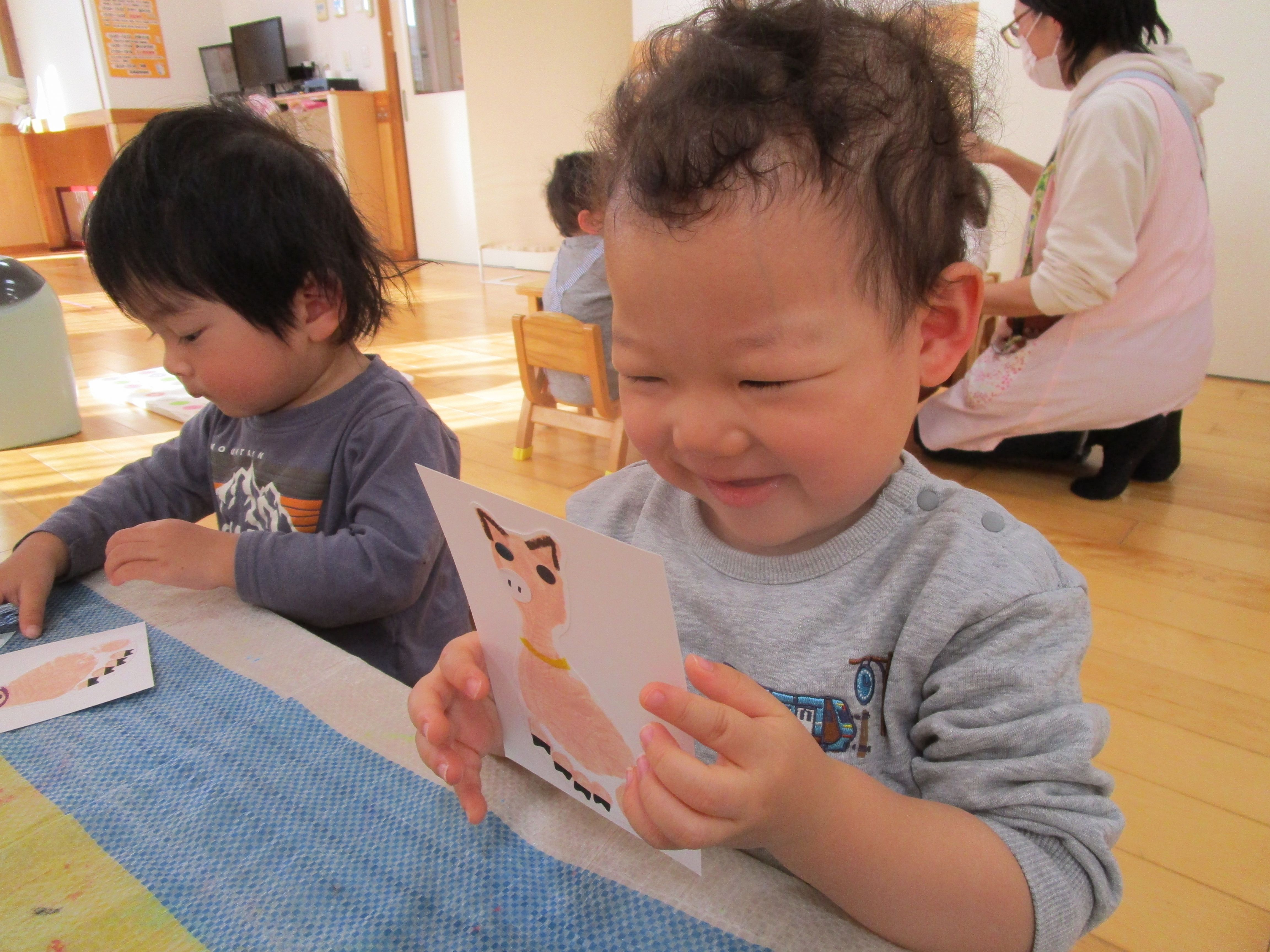 新年に向けて年賀状製作を行いました🎍 来年は午年🐴 まずは馬にクレヨンで好きな色を塗ります🖍🎵 色の境目をこす…