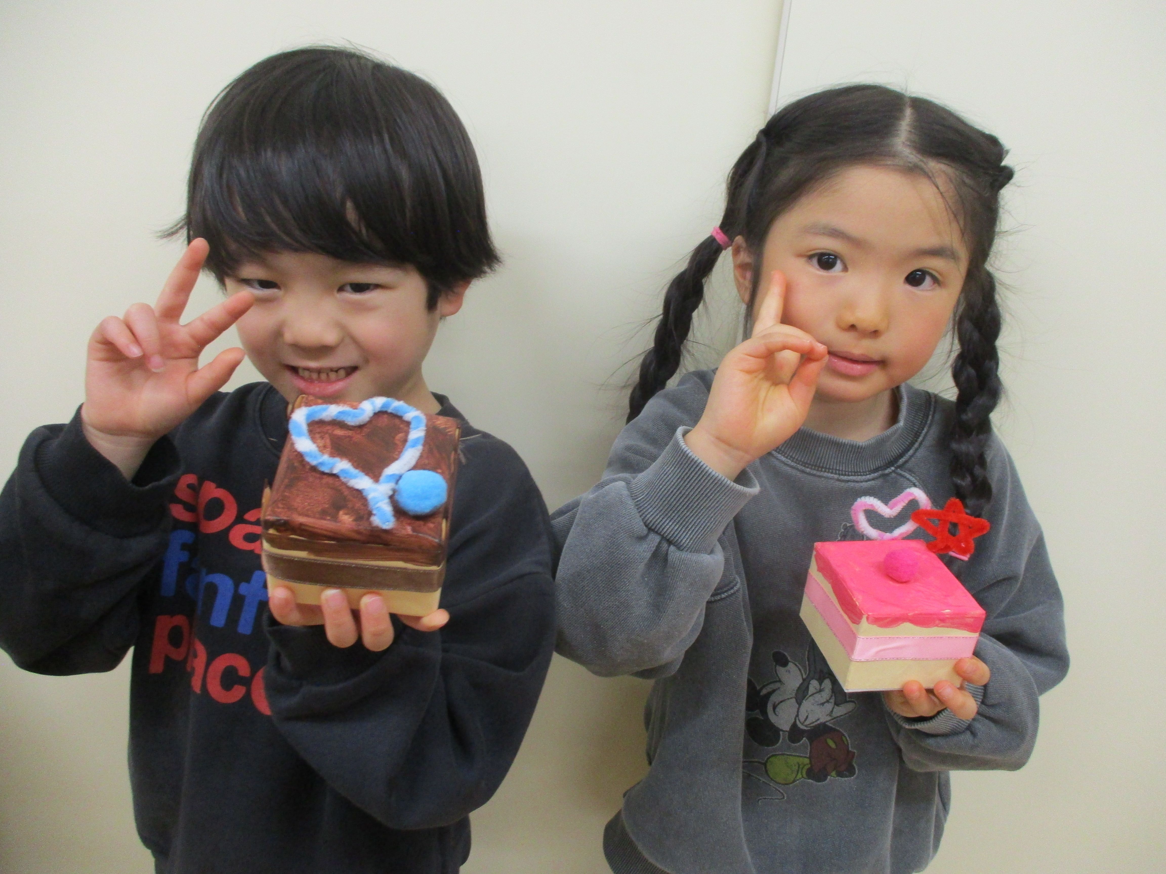 バレンタイン製作をしました🎵 ハサミを使い、チョコレートを切り分けます✂ お約束を守り、上手に切ることが出来ま…