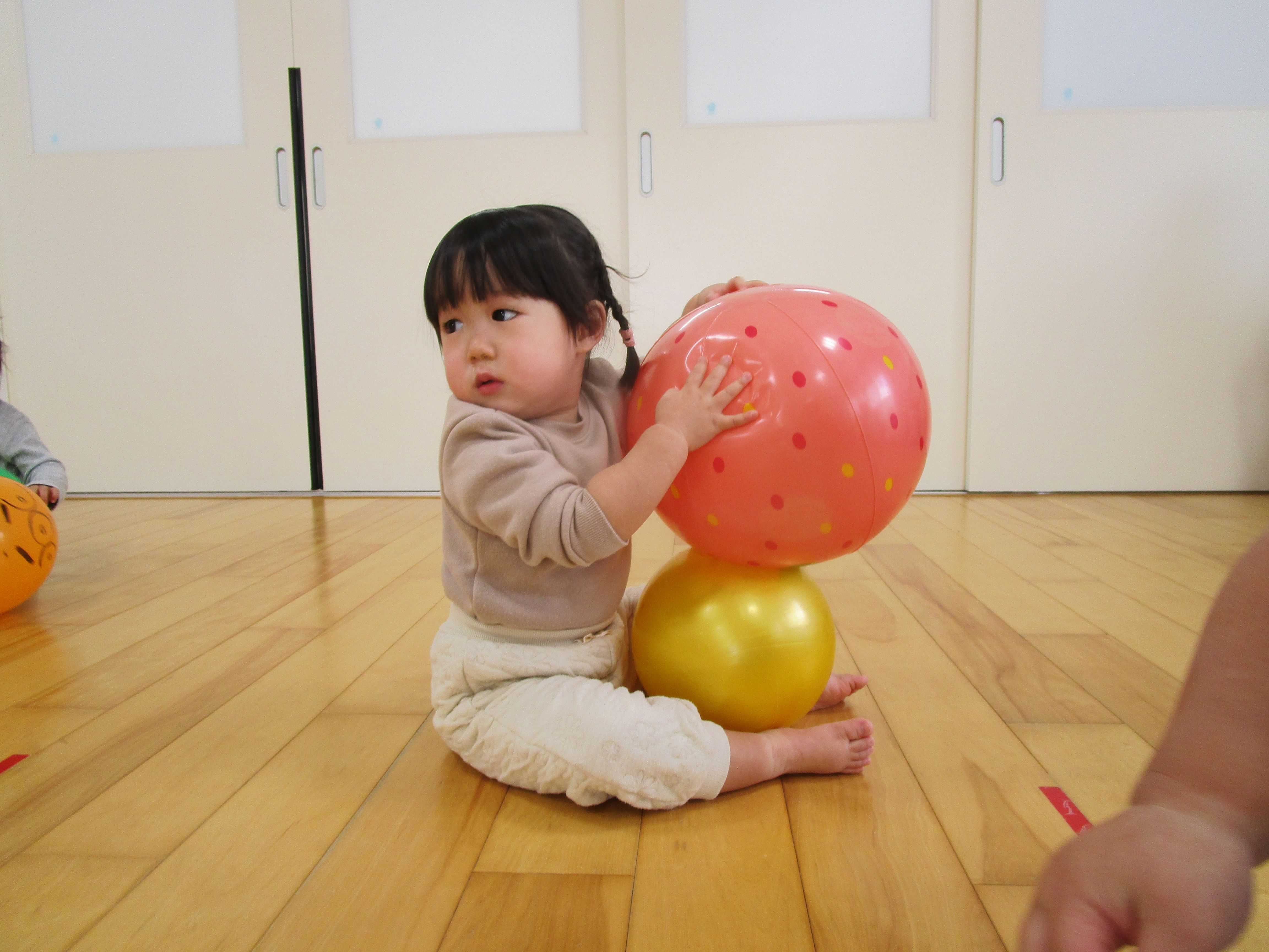 ボールを重ねてみたりと、色々な遊び方をして楽しむ姿が