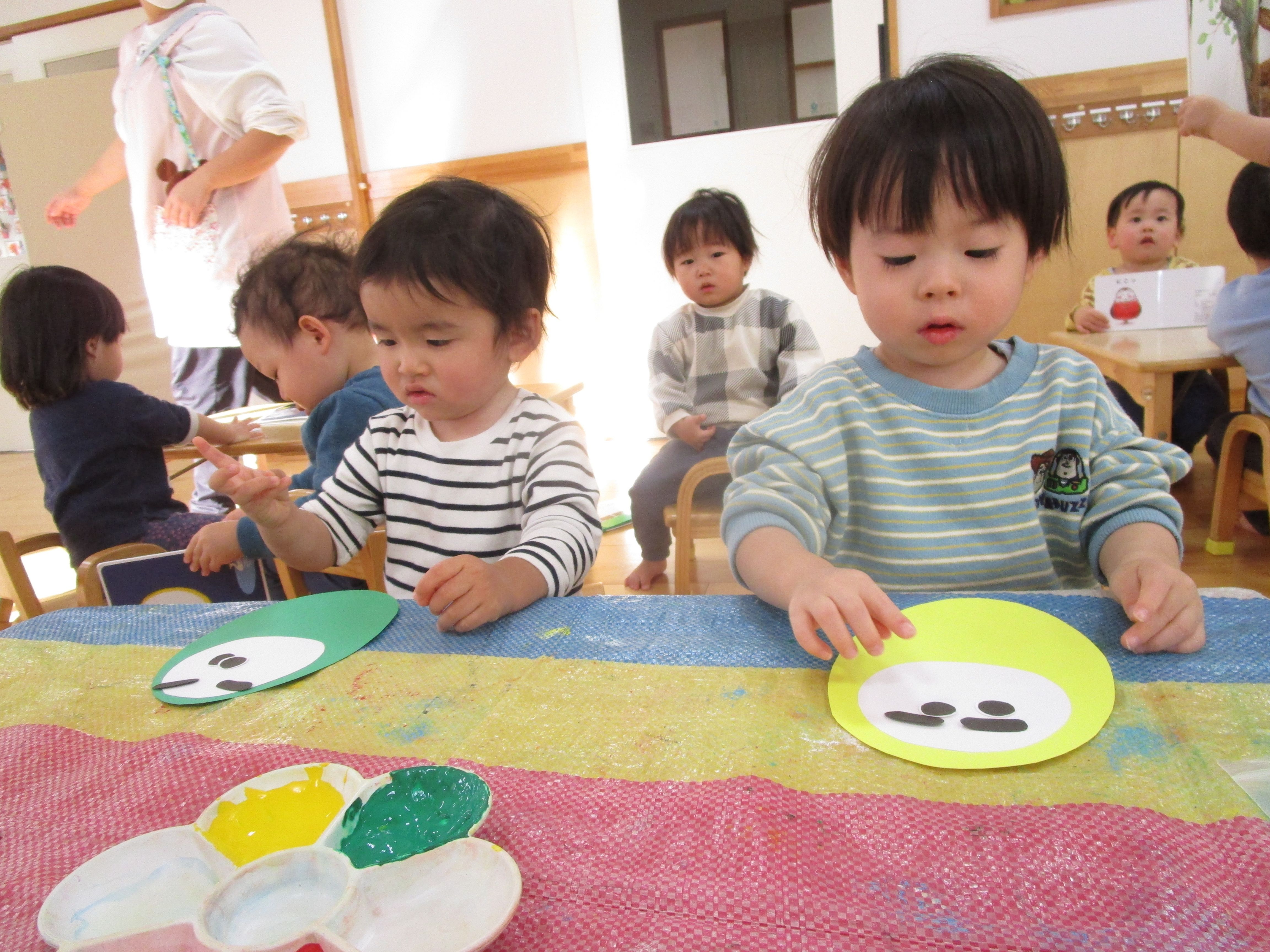 眉・目・ひげを貼って顔を作ります。