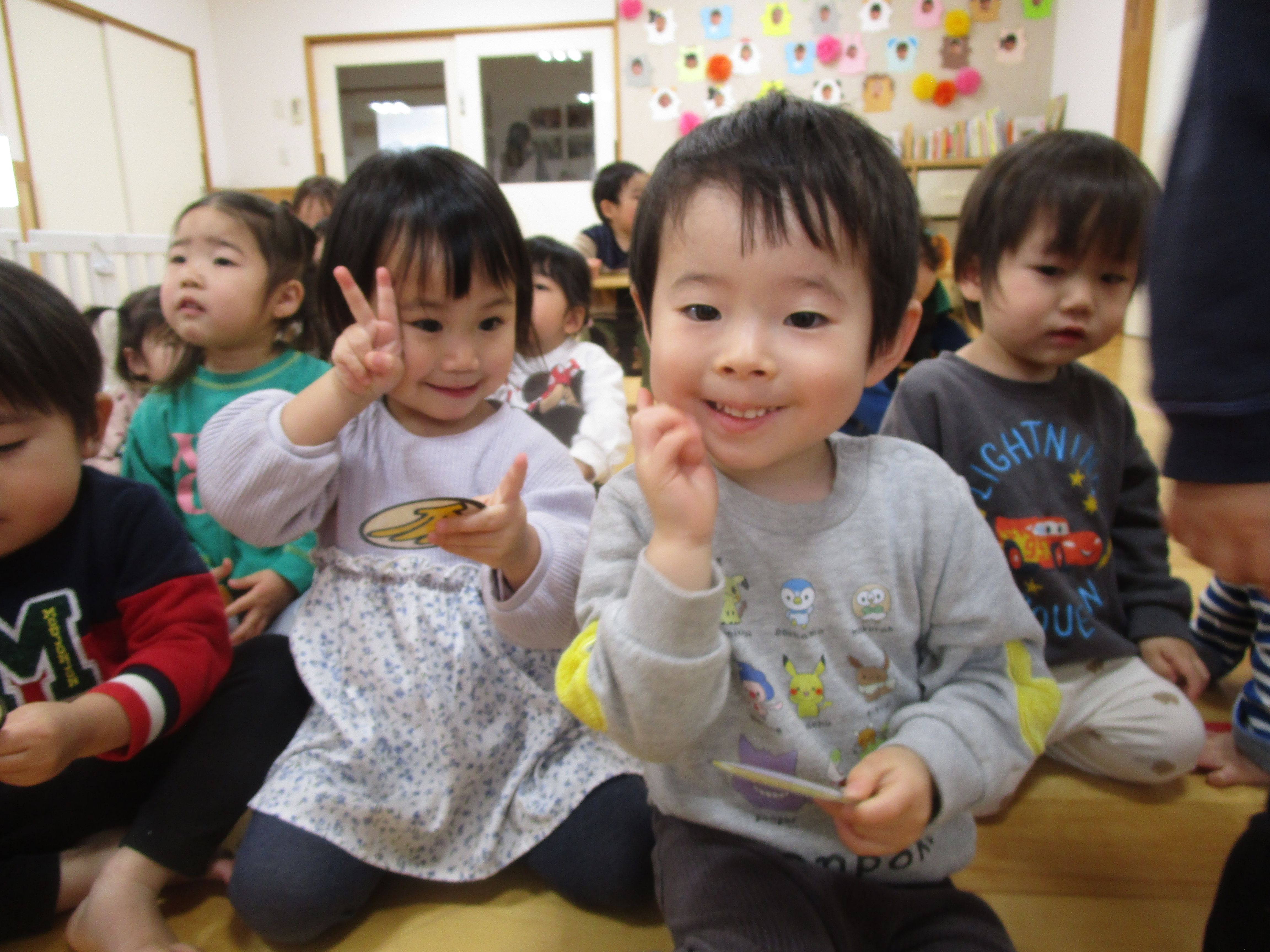 出てきたイラストをみて嬉しそうなお友だち。