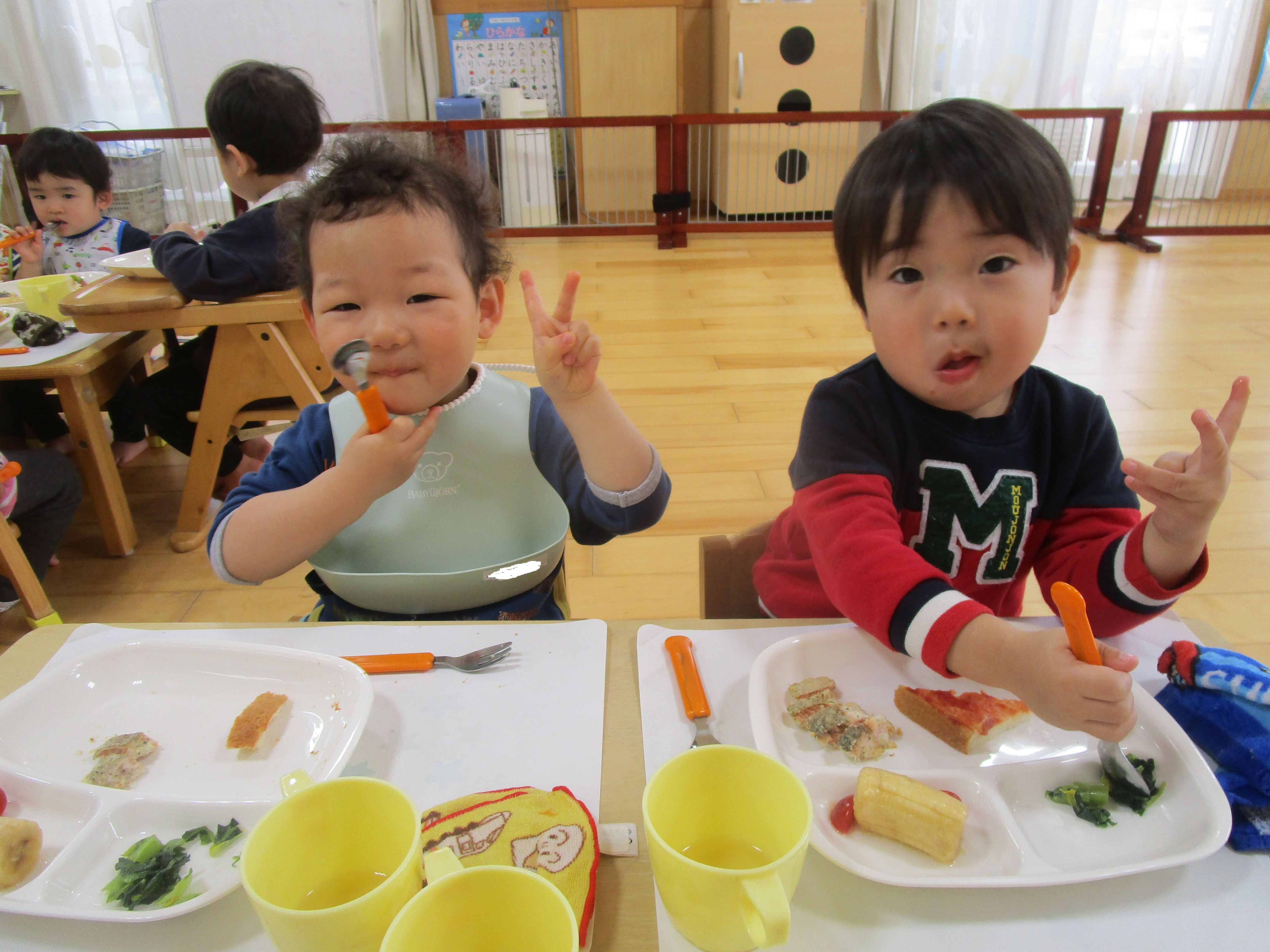 「ピザだよ!」と嬉しそうに食べていました!