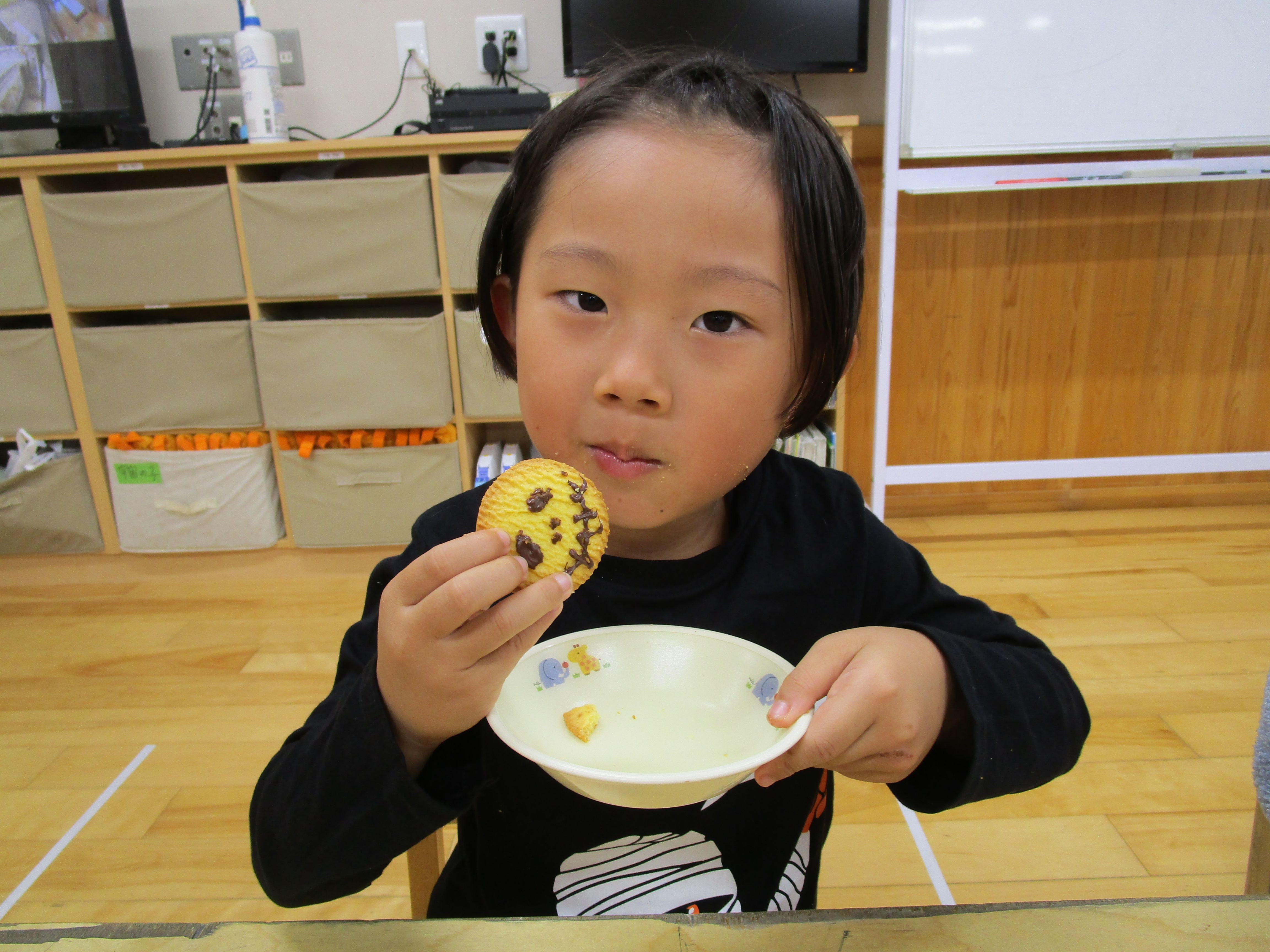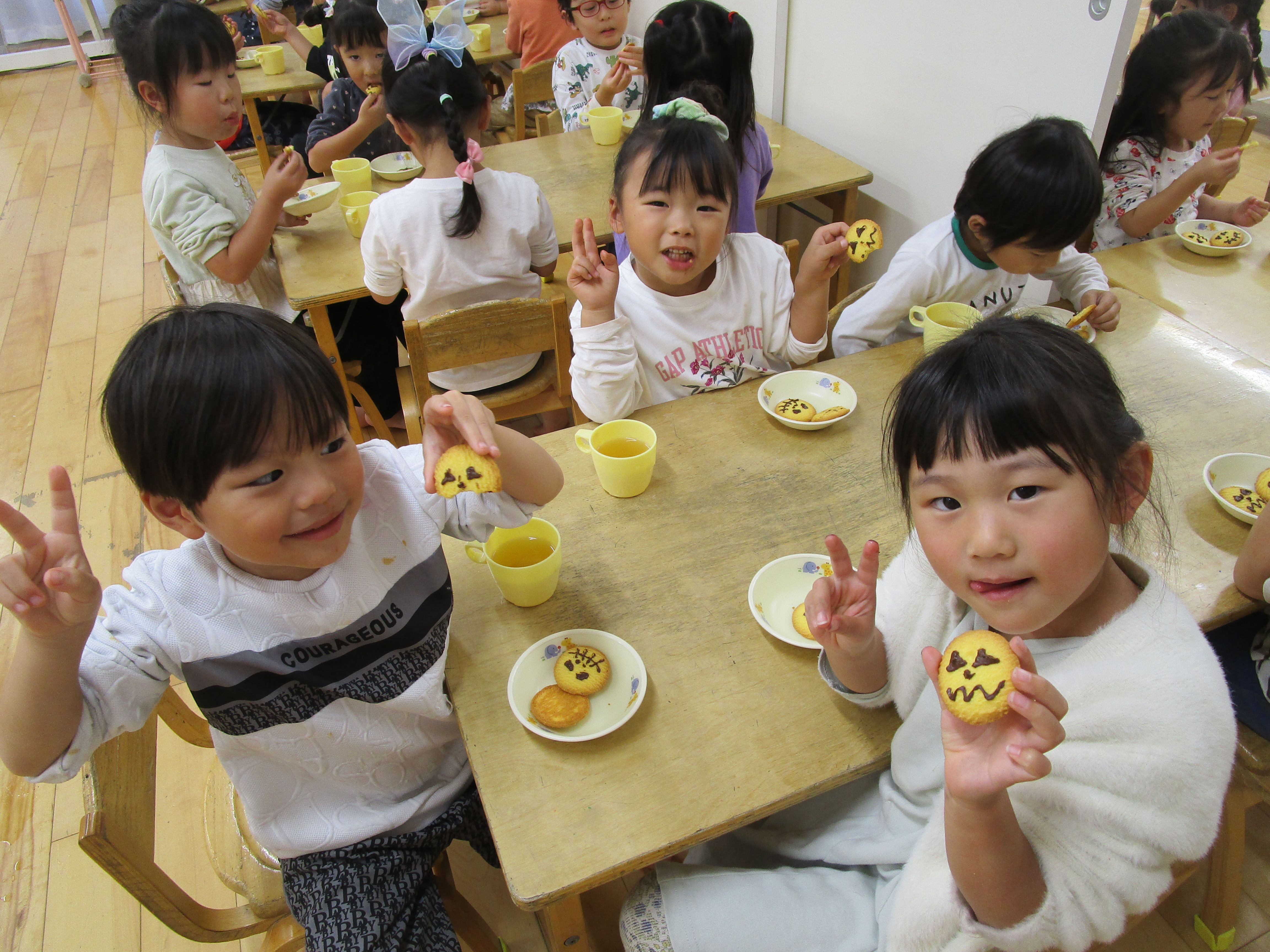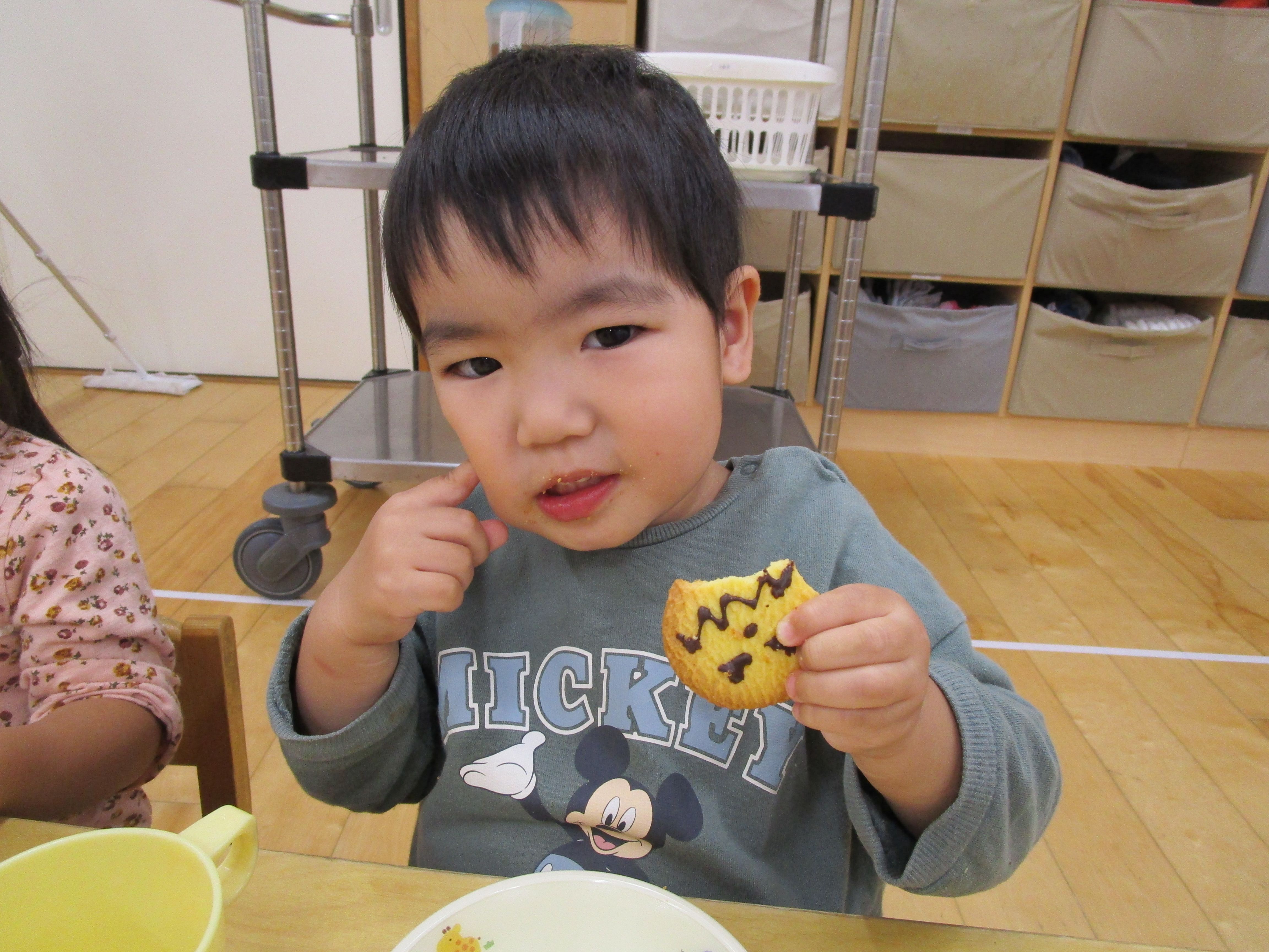 お友達同士で表情の違うおばけの顔を見せ合い、楽しみながら食べていました!