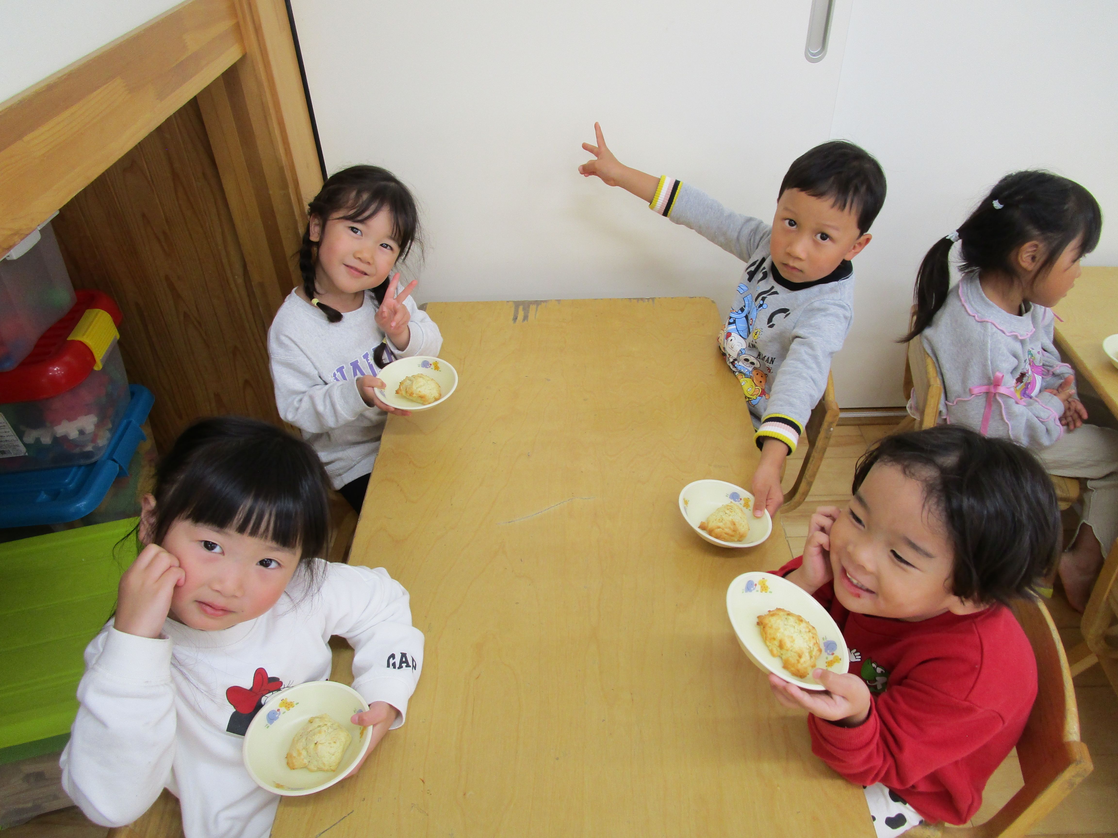 「今日のおやつ楽しみ~」とおやつの時間を楽しみにしている様子✨