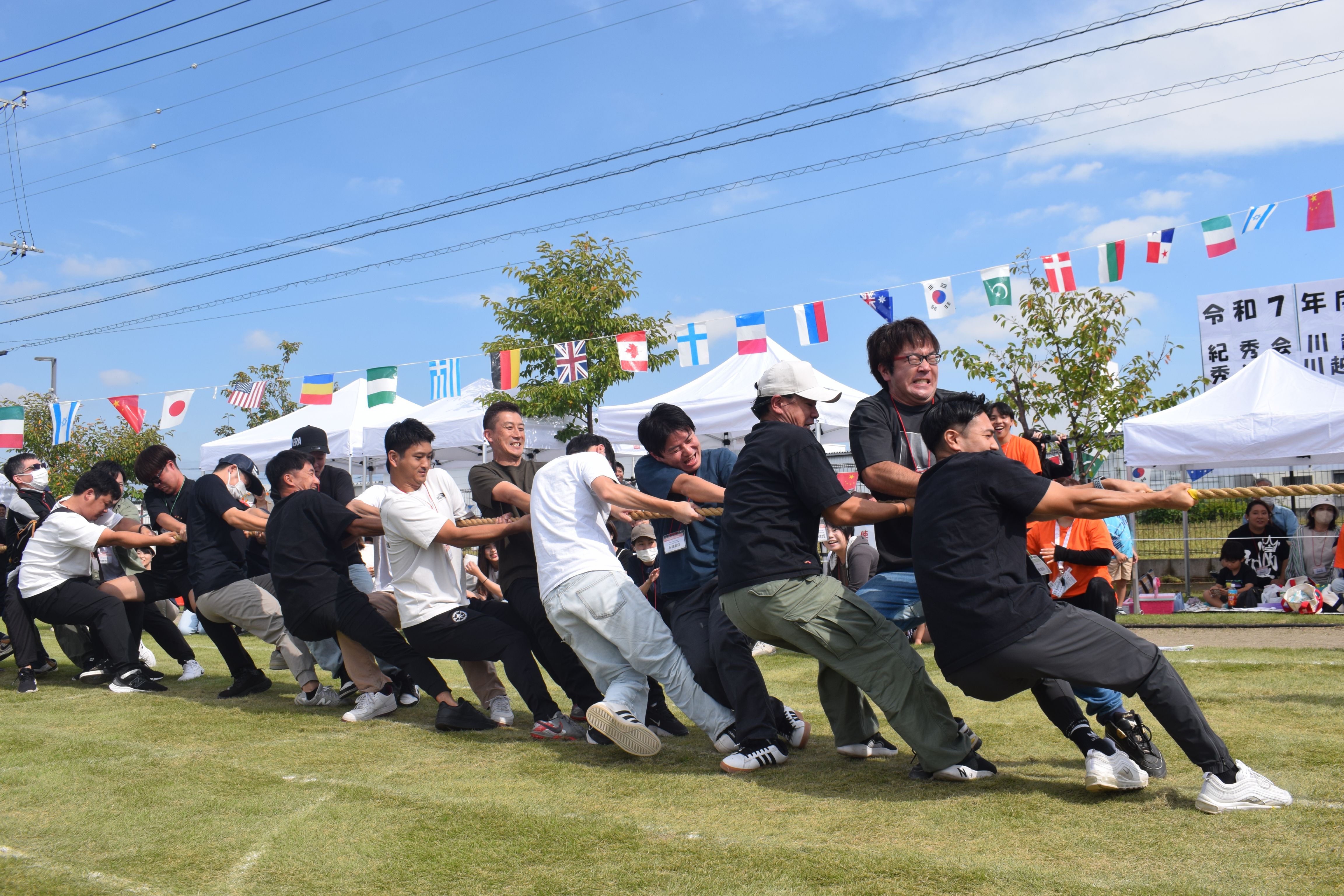 綱引きは、園児もお父さんお母さんたちも大盛り上がり!