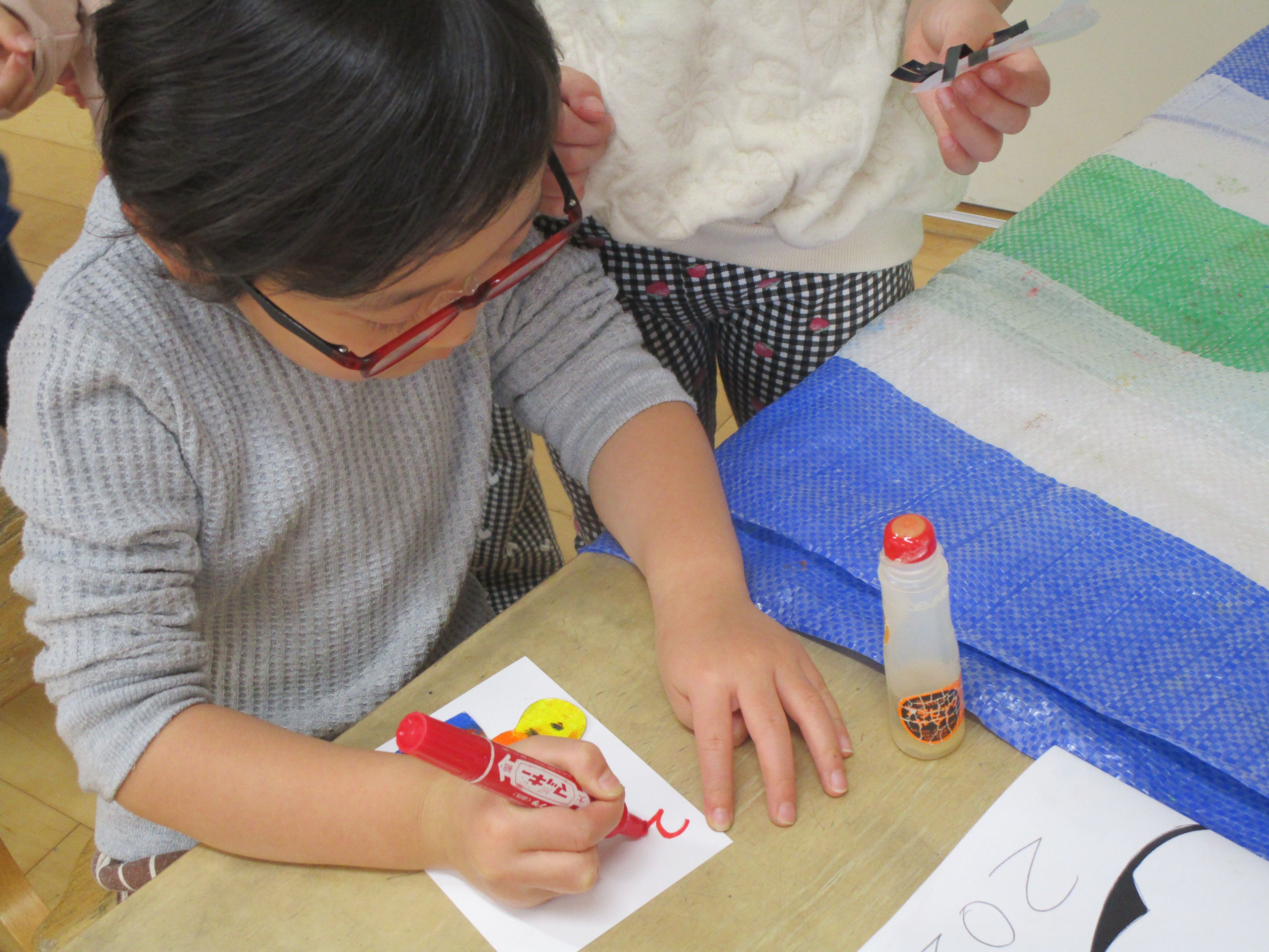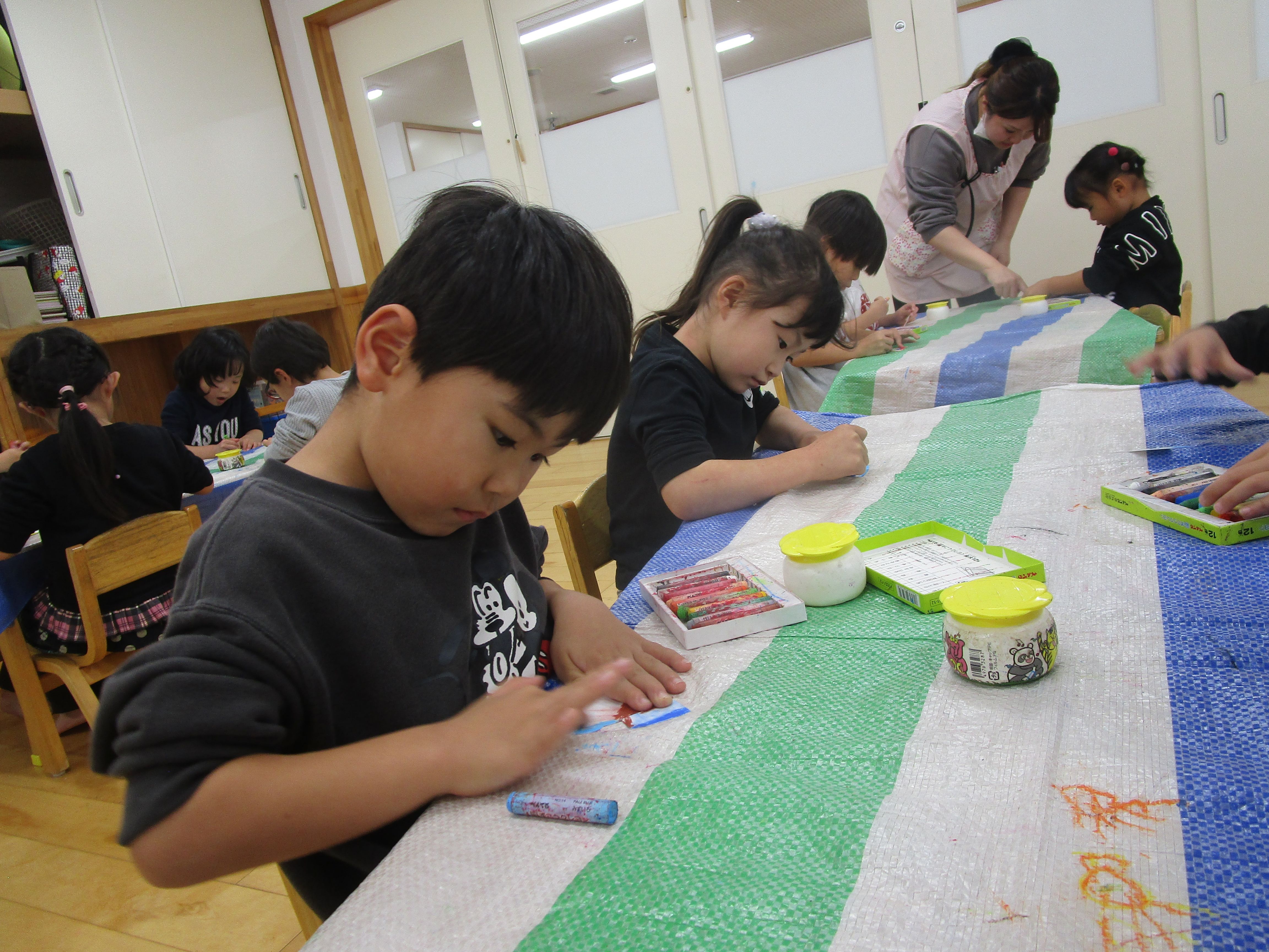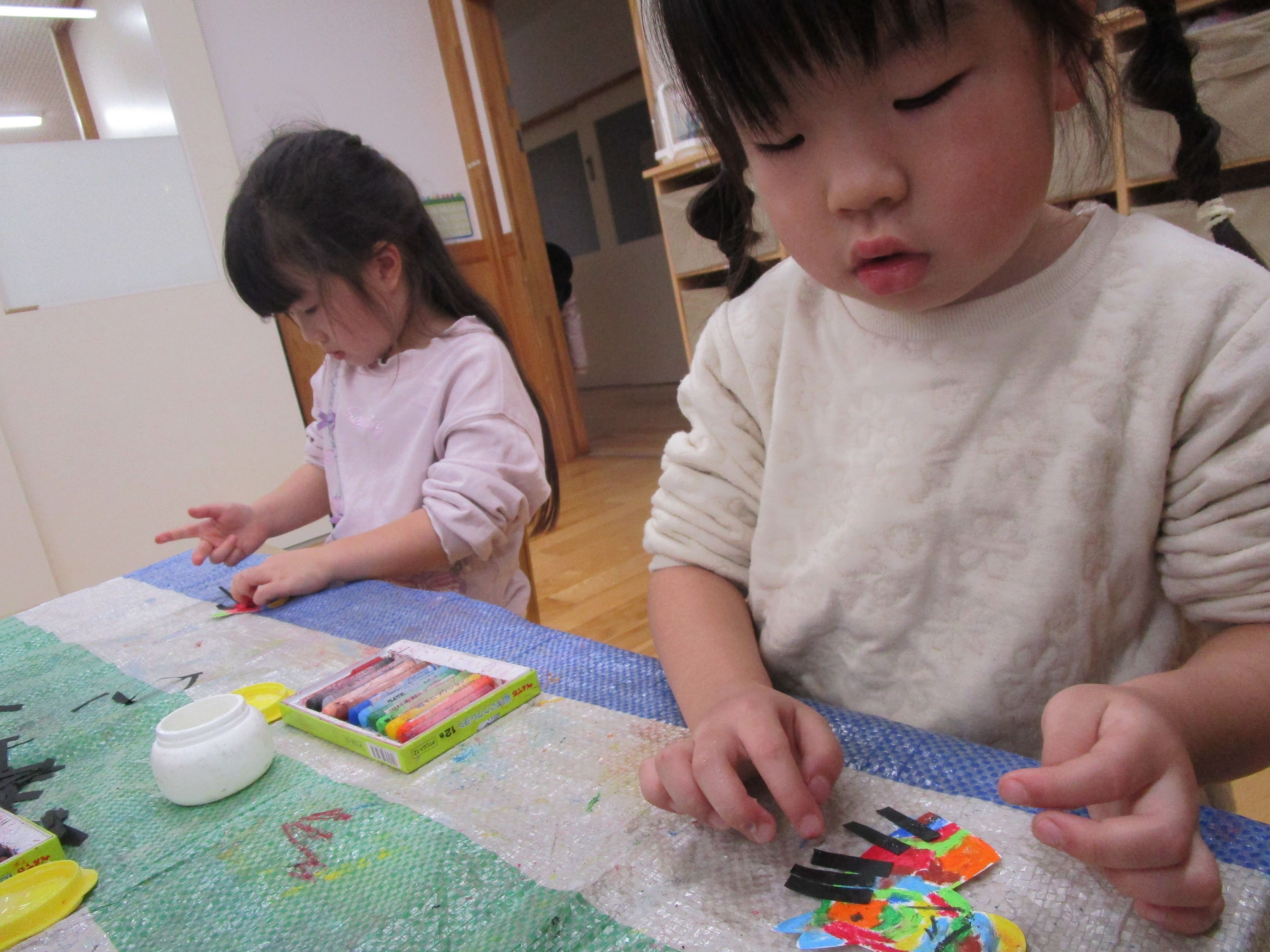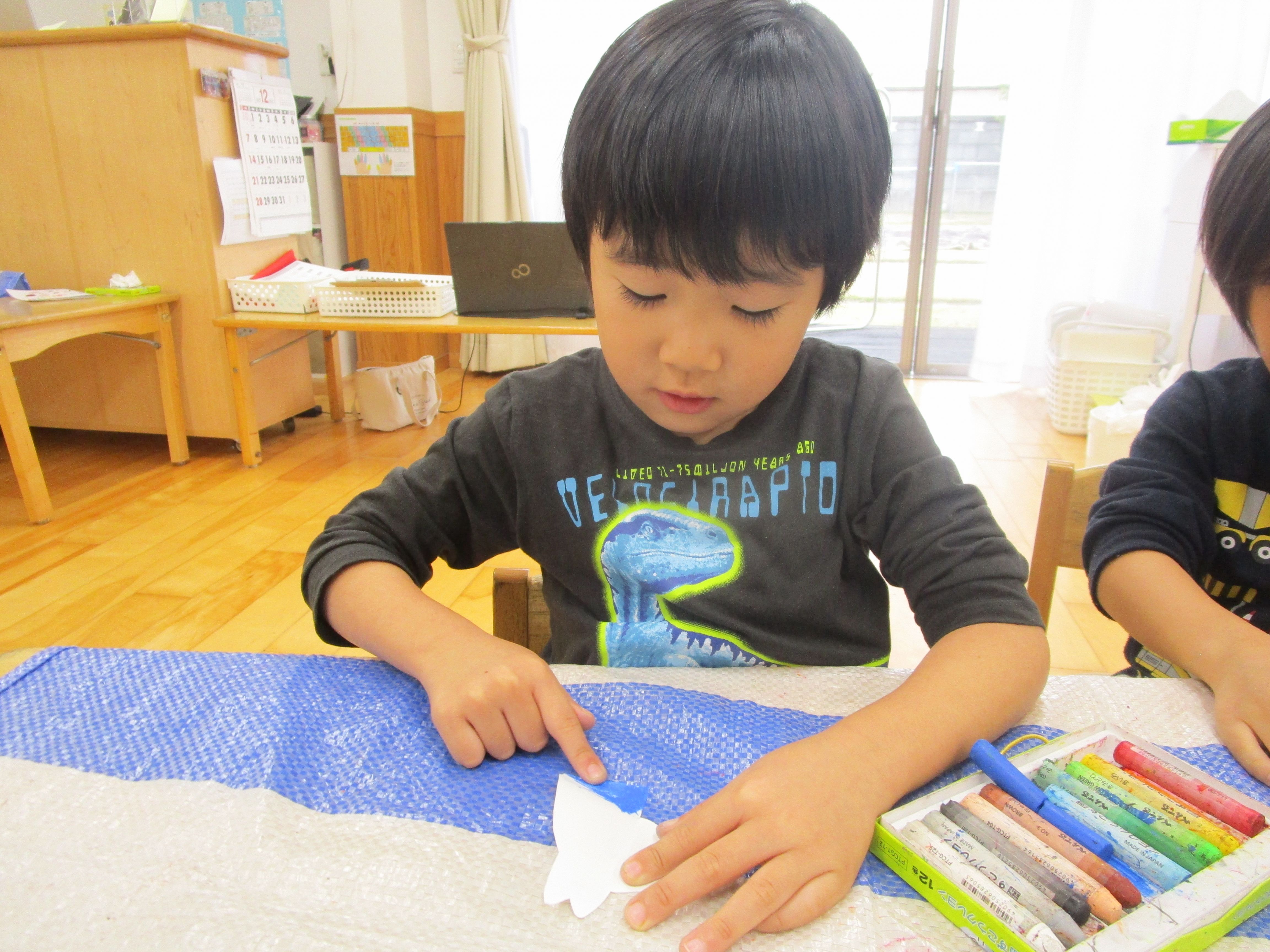 まずは馬にクレヨンで好きな色を塗ります🖍🎵