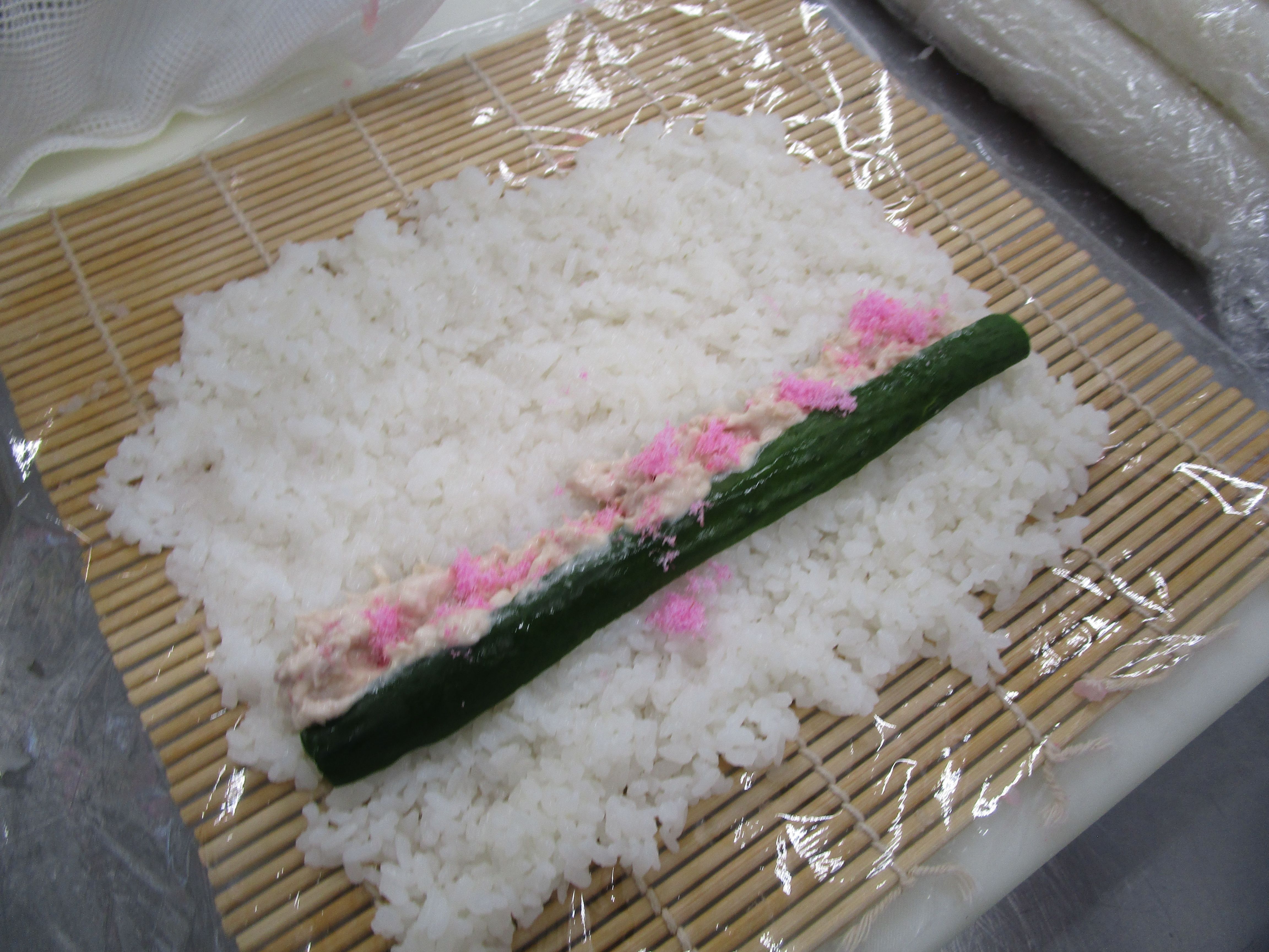 恵方巻は、きゅうり・ツナマヨ・でんぶを入れて一つ一つ丁寧に作りました。