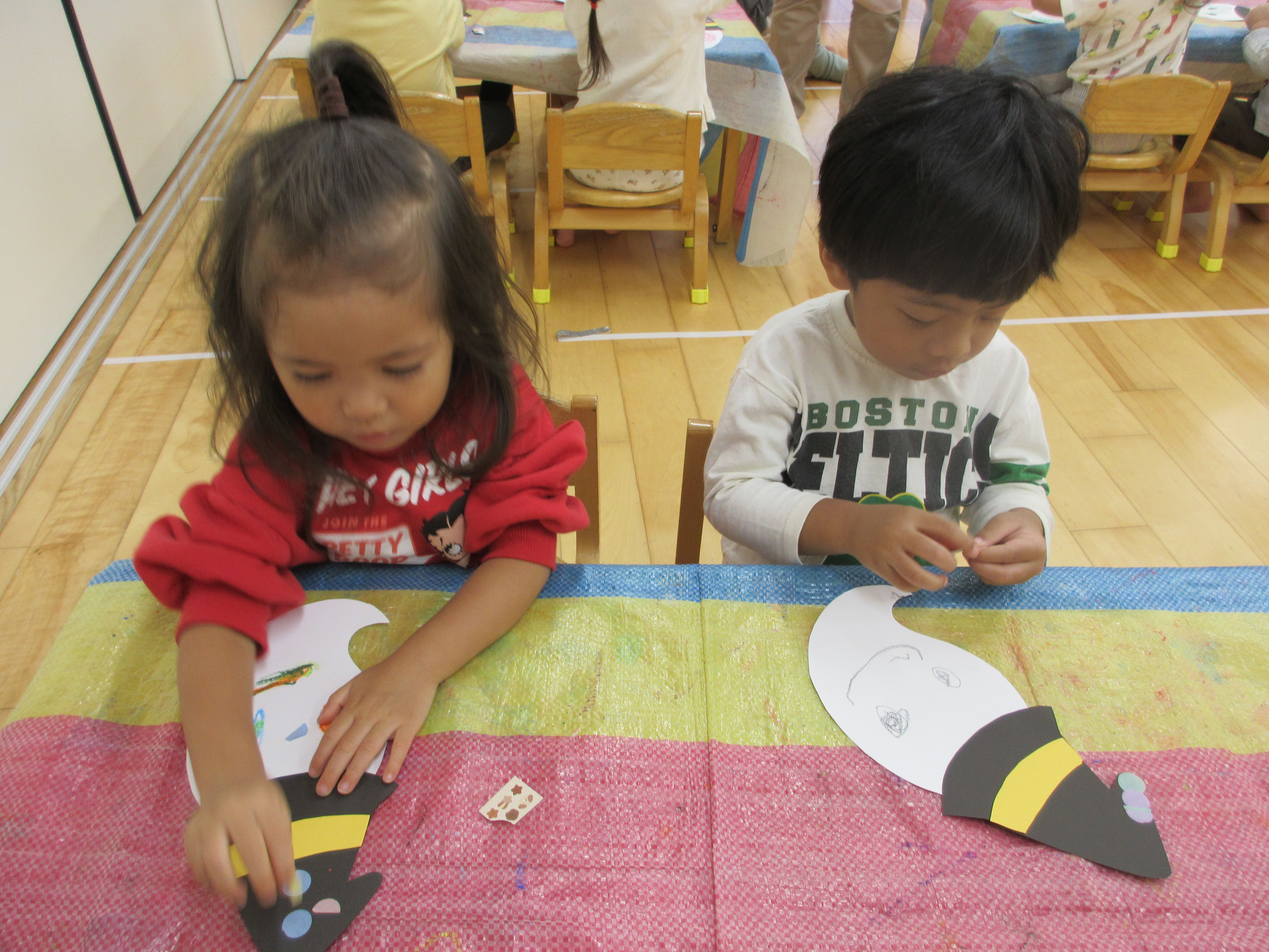顔を描き、帽子にシールを貼ると、可愛いおばけが出来ました🎩