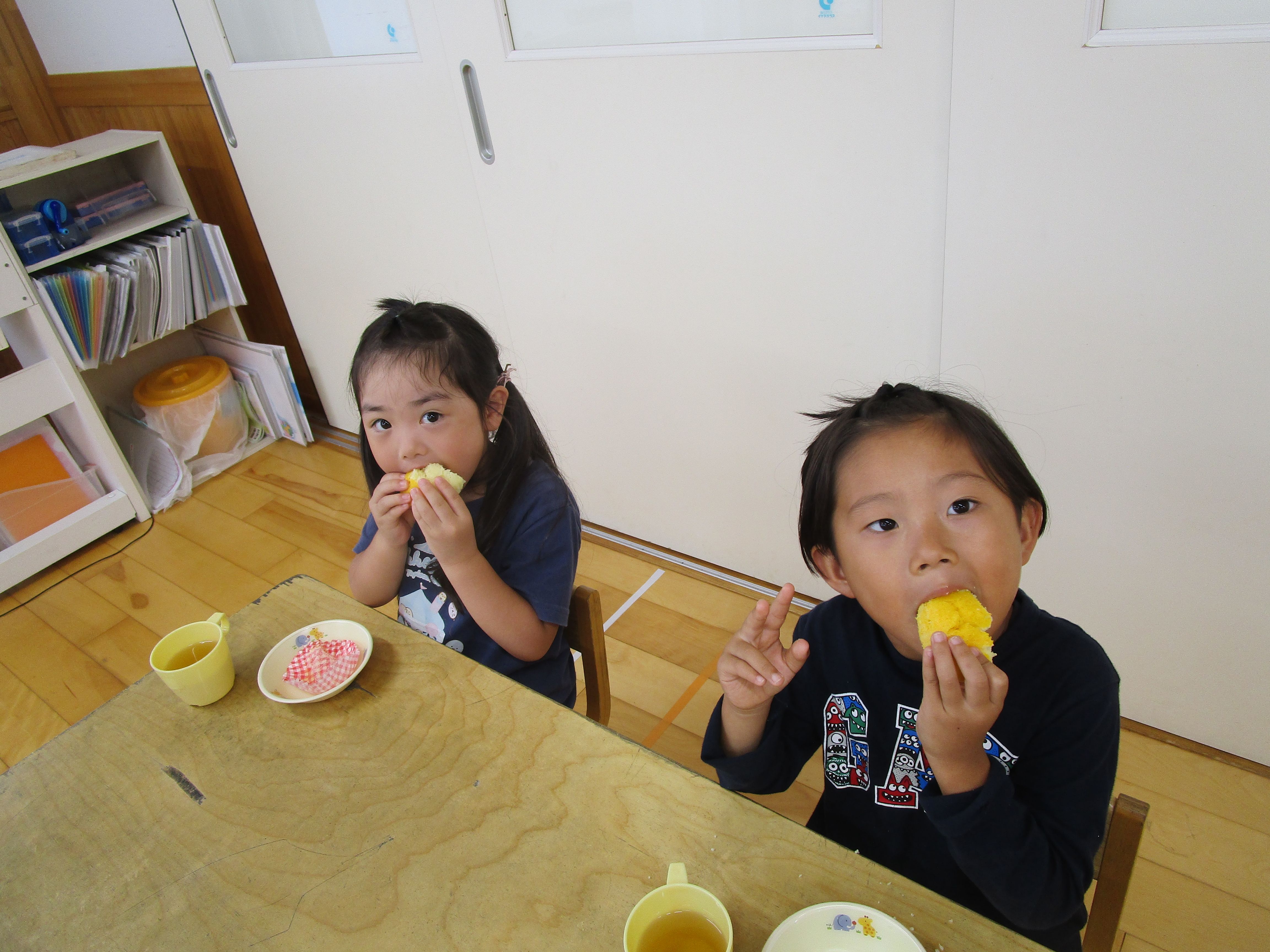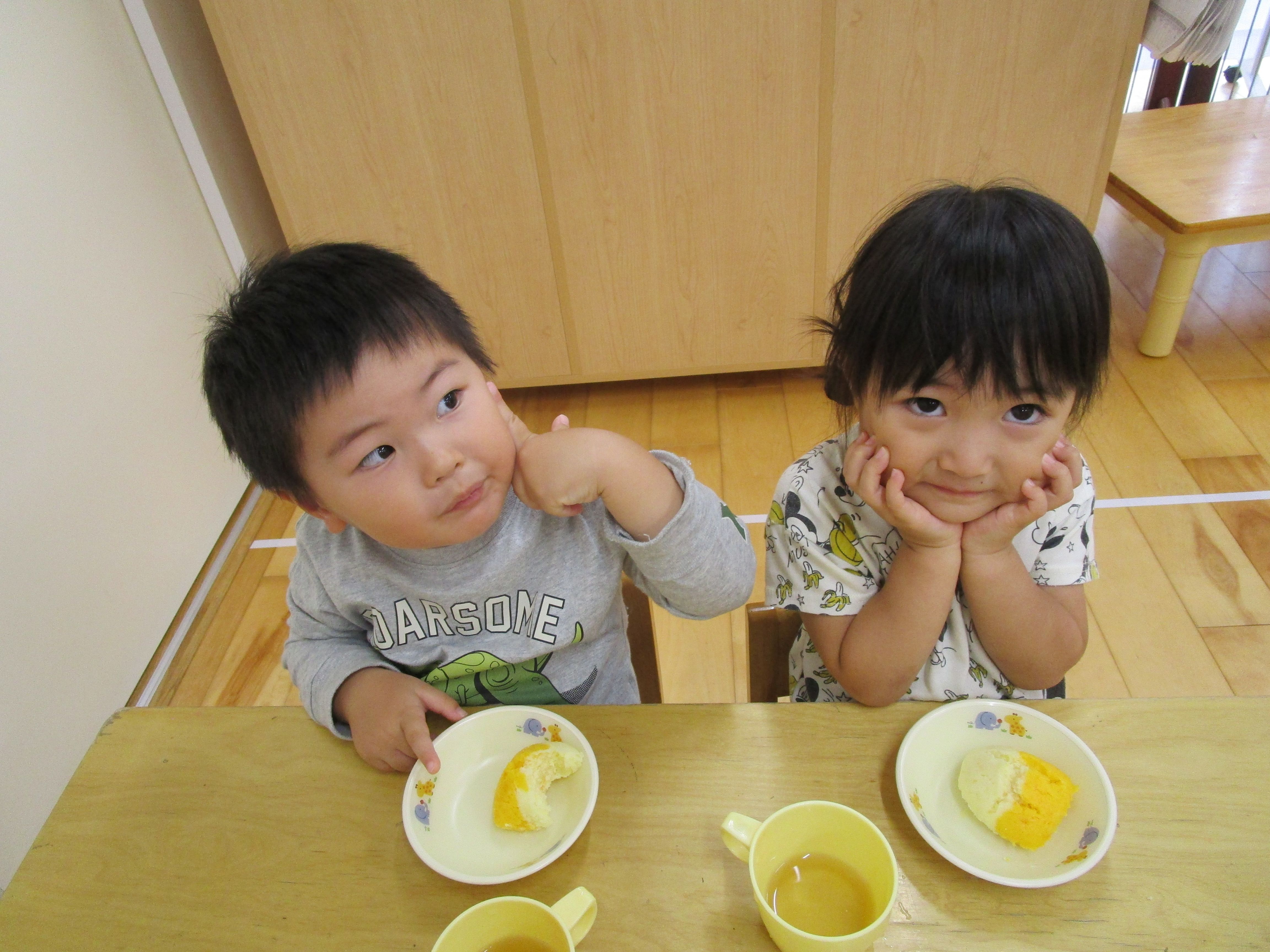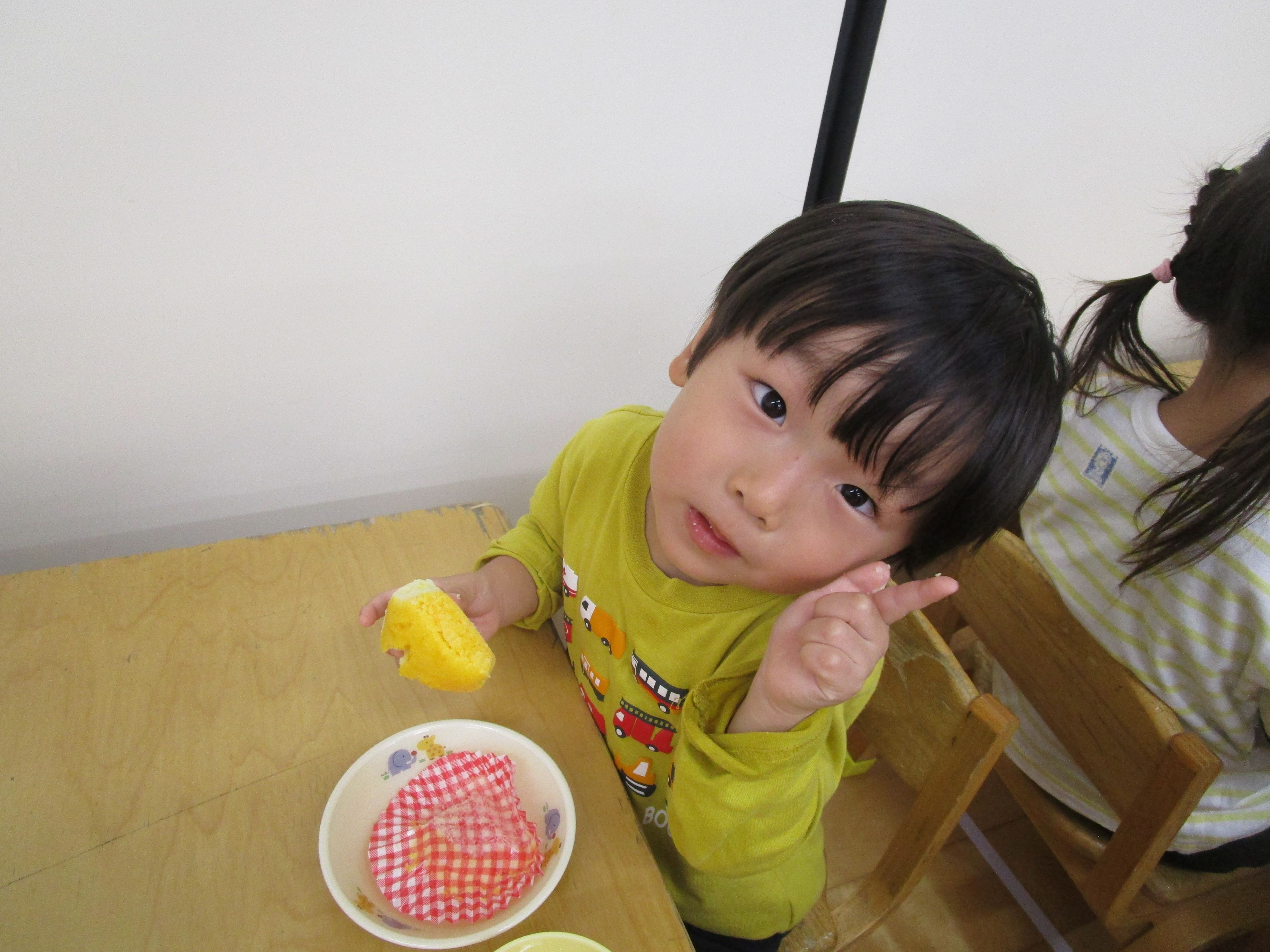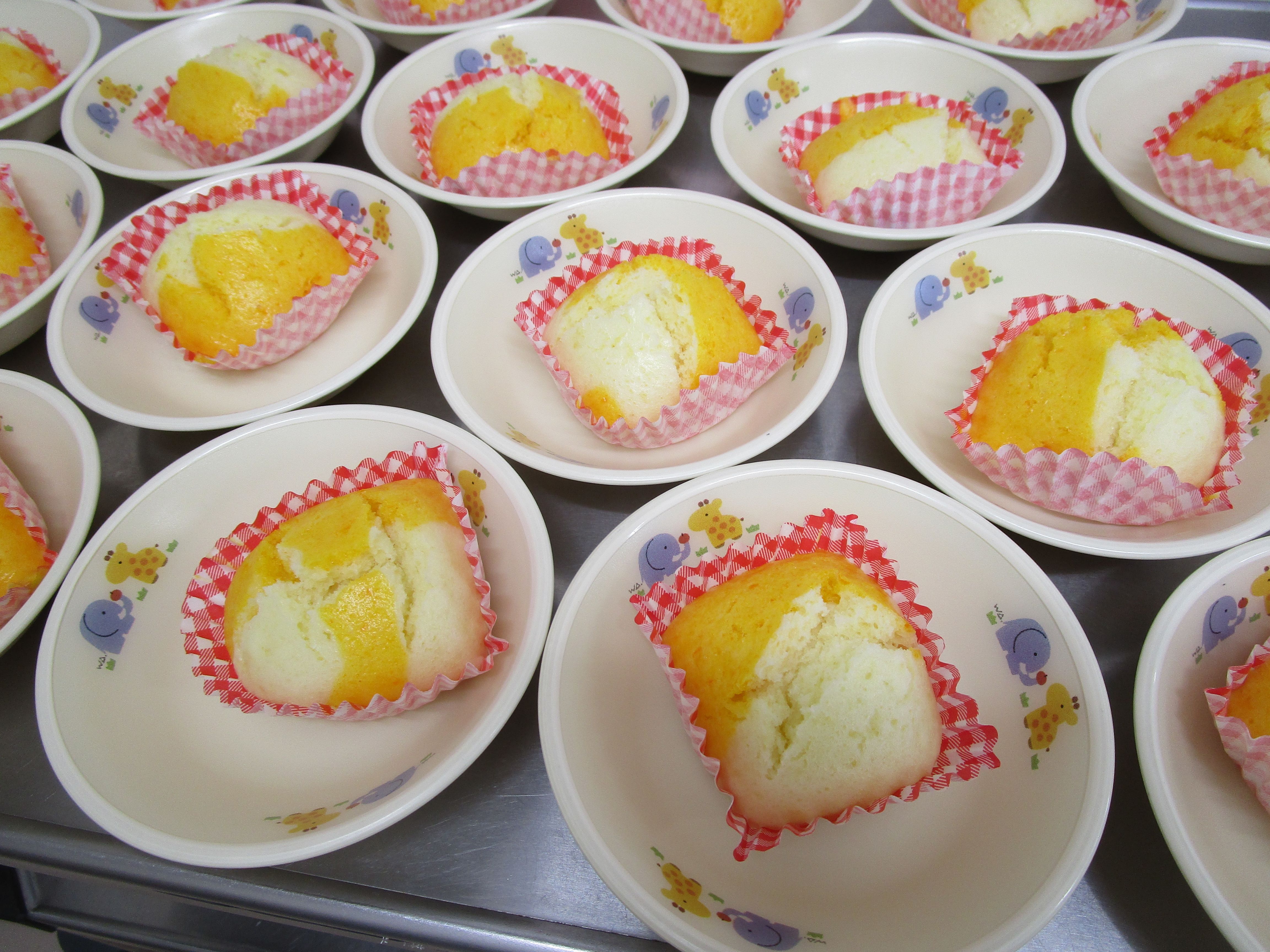おやつで、「紅白蒸しパン」を提供しました!