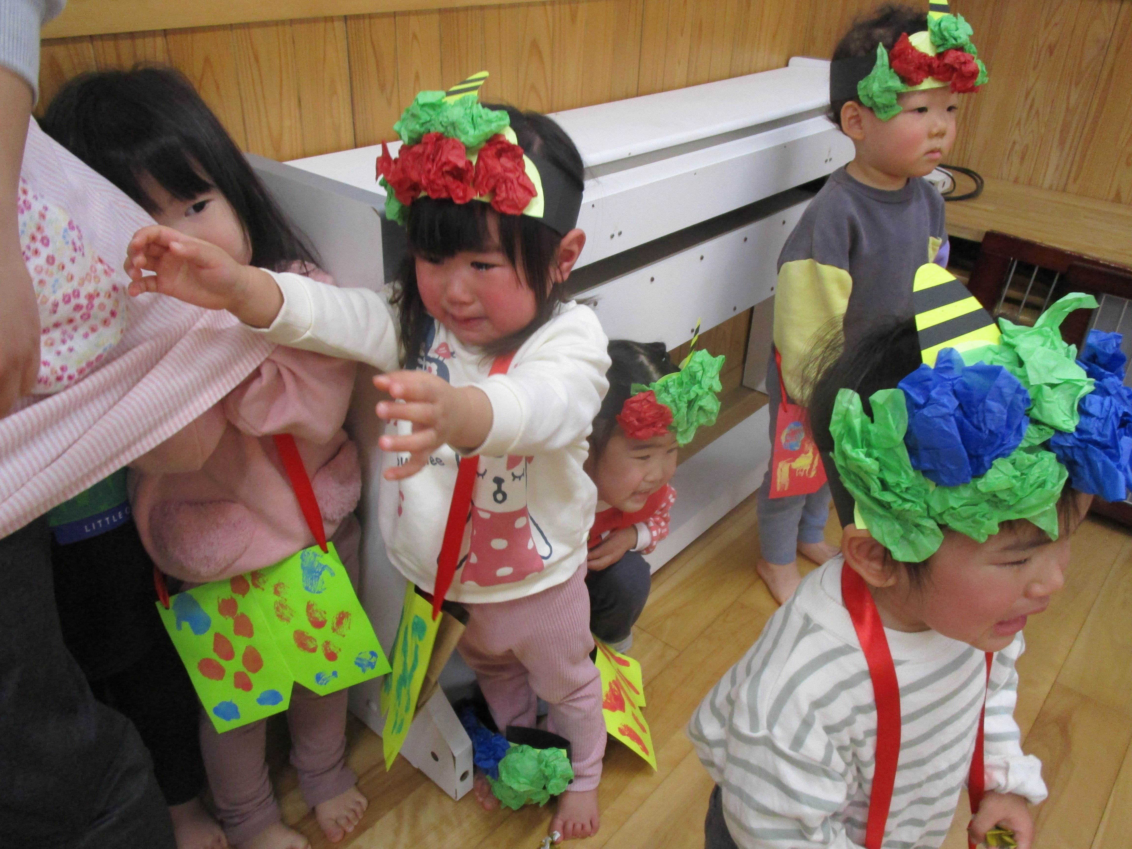 節分製作で作った物を身に付け、鬼退治に向かいます🎵