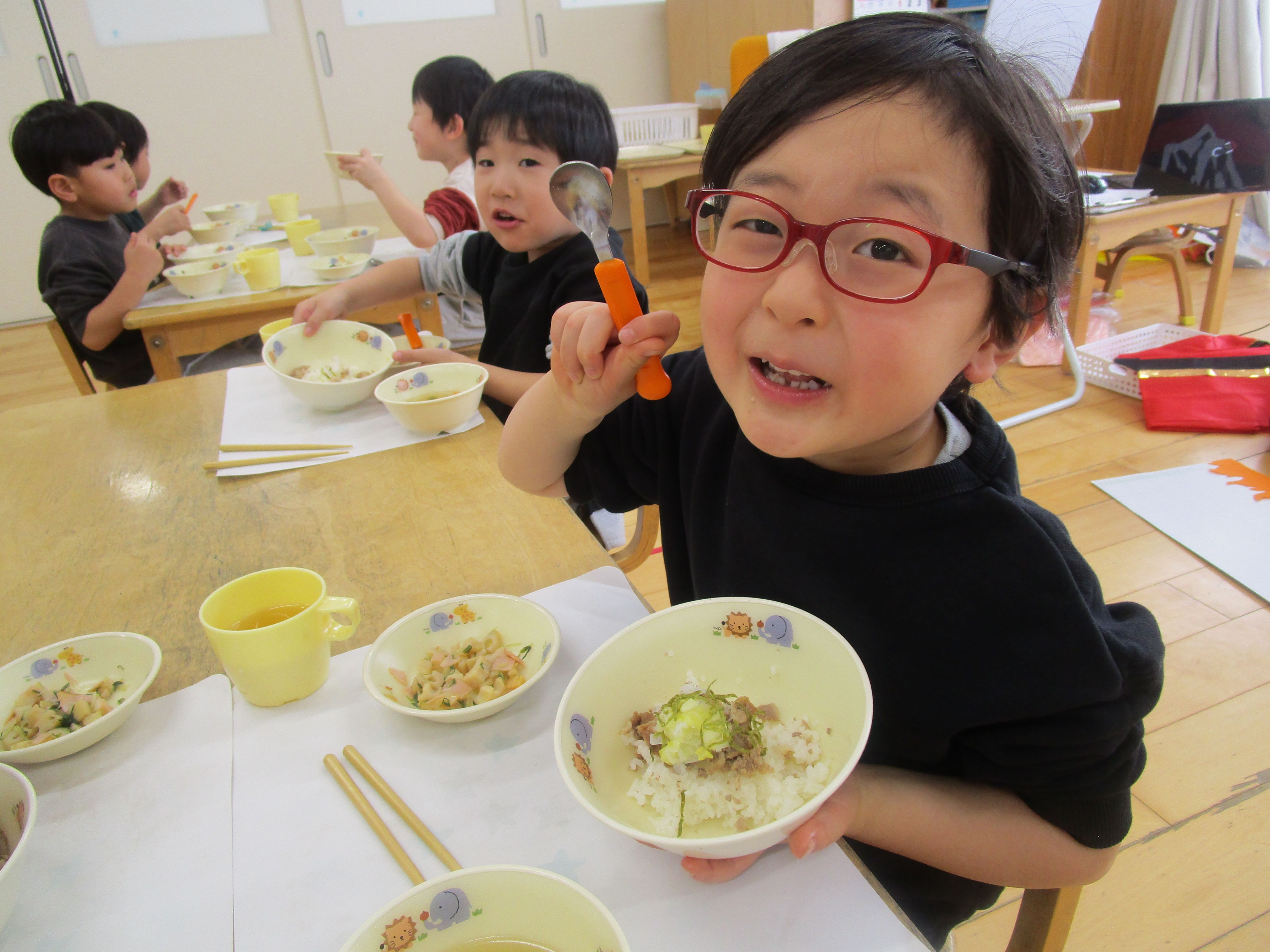 1月28日の給食では、北海道の郷土料理「豚丼」を提供しました♪