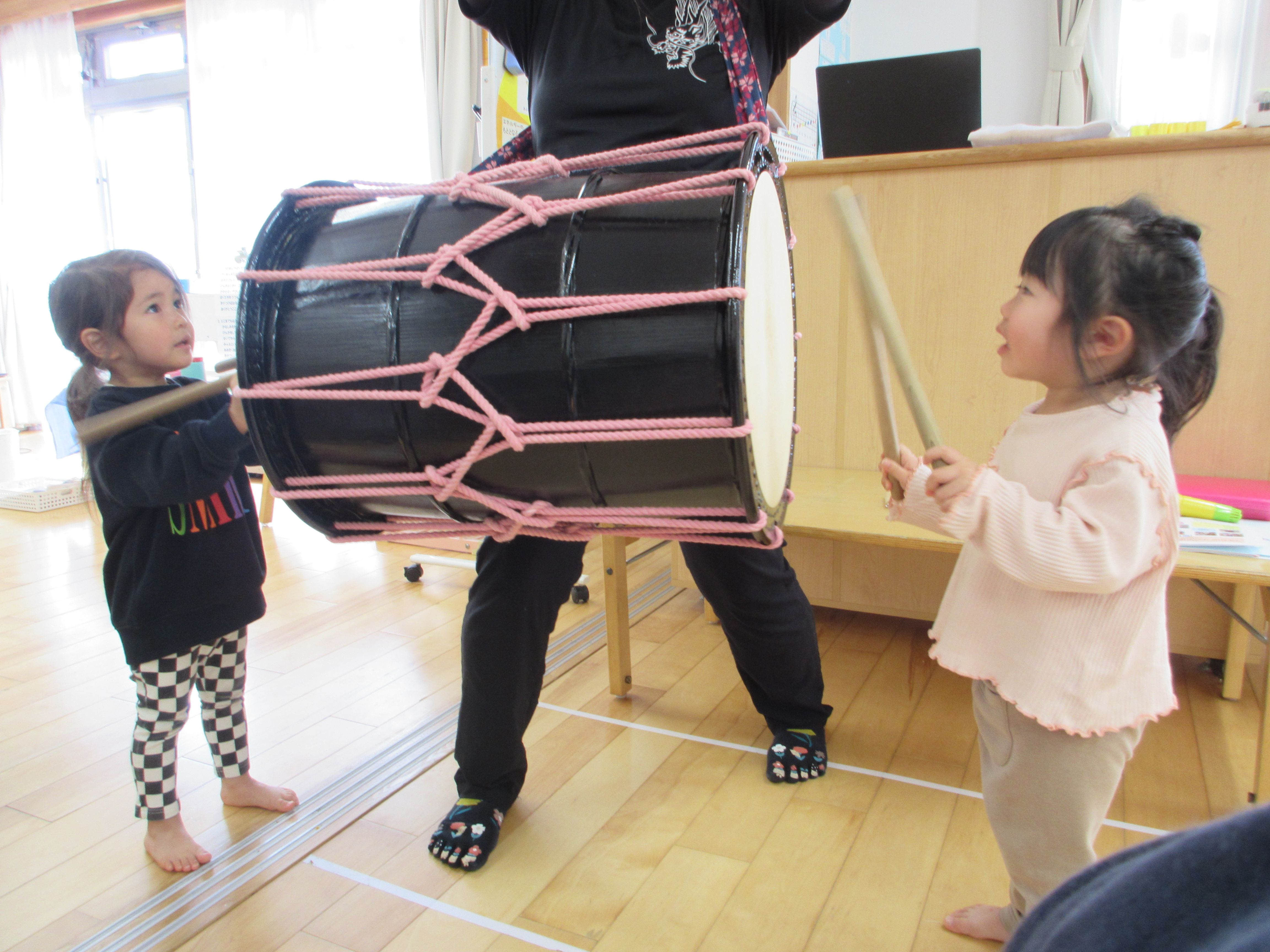 今月の出し物は、「和太鼓に触れてみよう!~リズム遊び~」です🎶