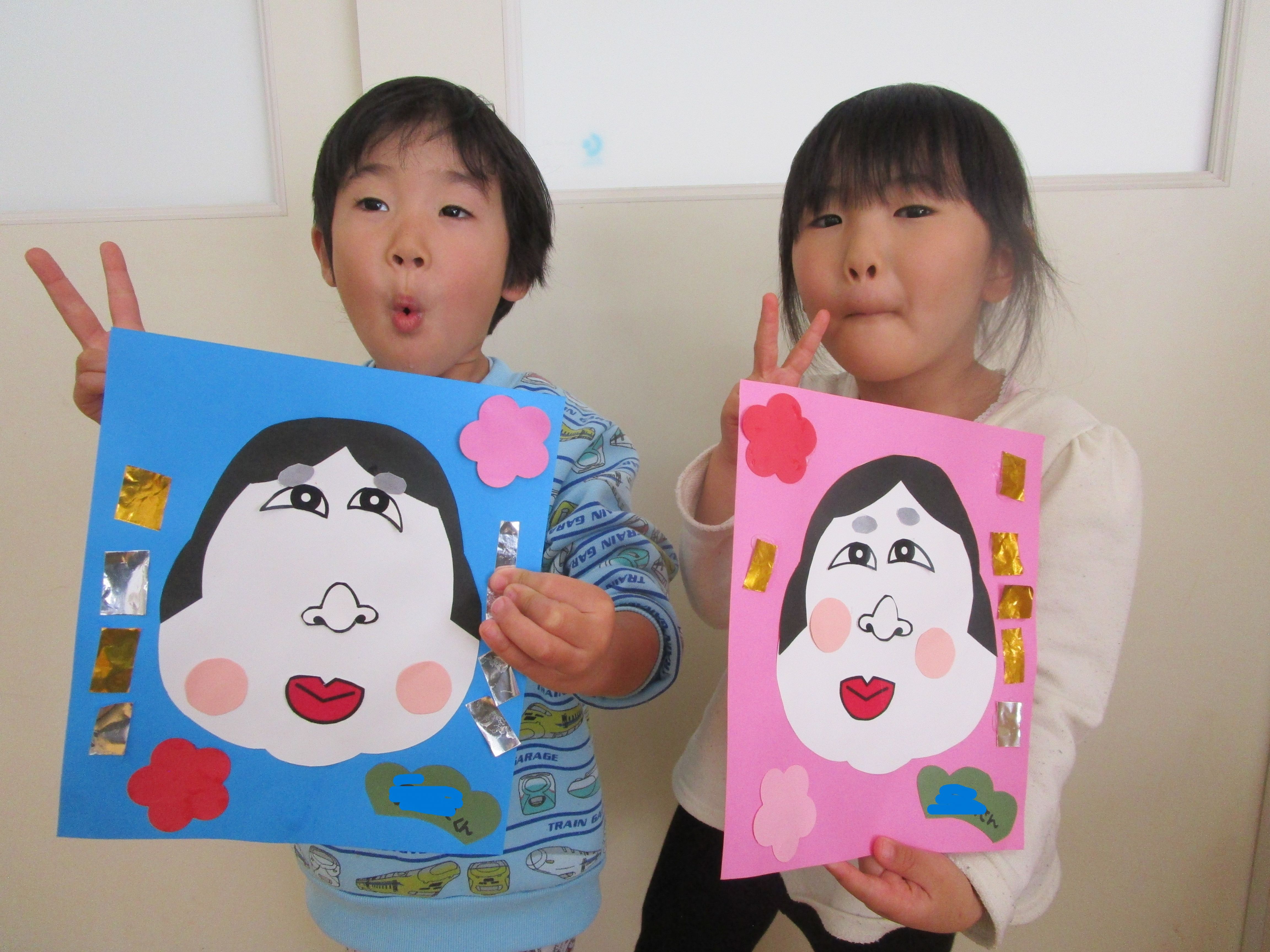 太陽の子くみ🎍壁面製作「福笑い」